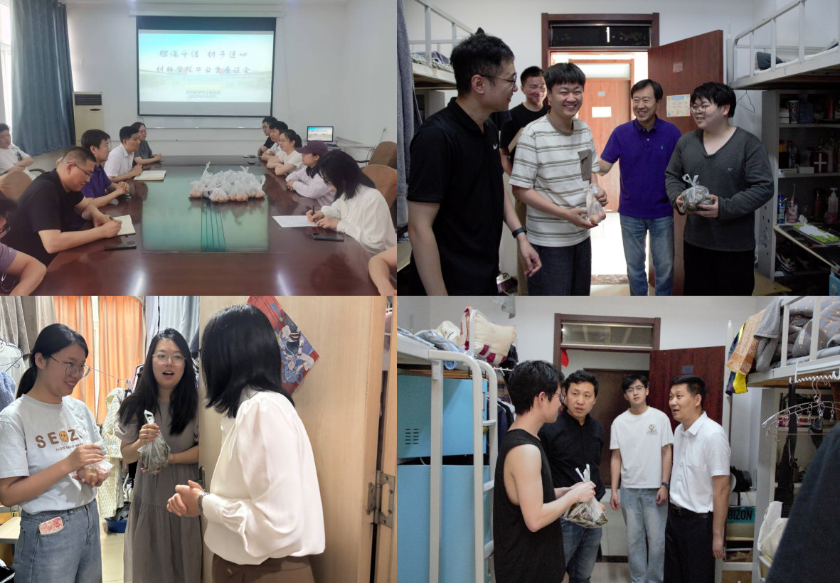 端午临仲夏,时清日复长。为弘扬中华优秀传统文化,传递学院对毕业生的深切关怀,5月29日,材料学院开展端午节毕业生暖心活动,通过毕业生座谈会与宿舍走访,为即将踏上人生新征程的材料学子送上温暖祝福与殷切期望。