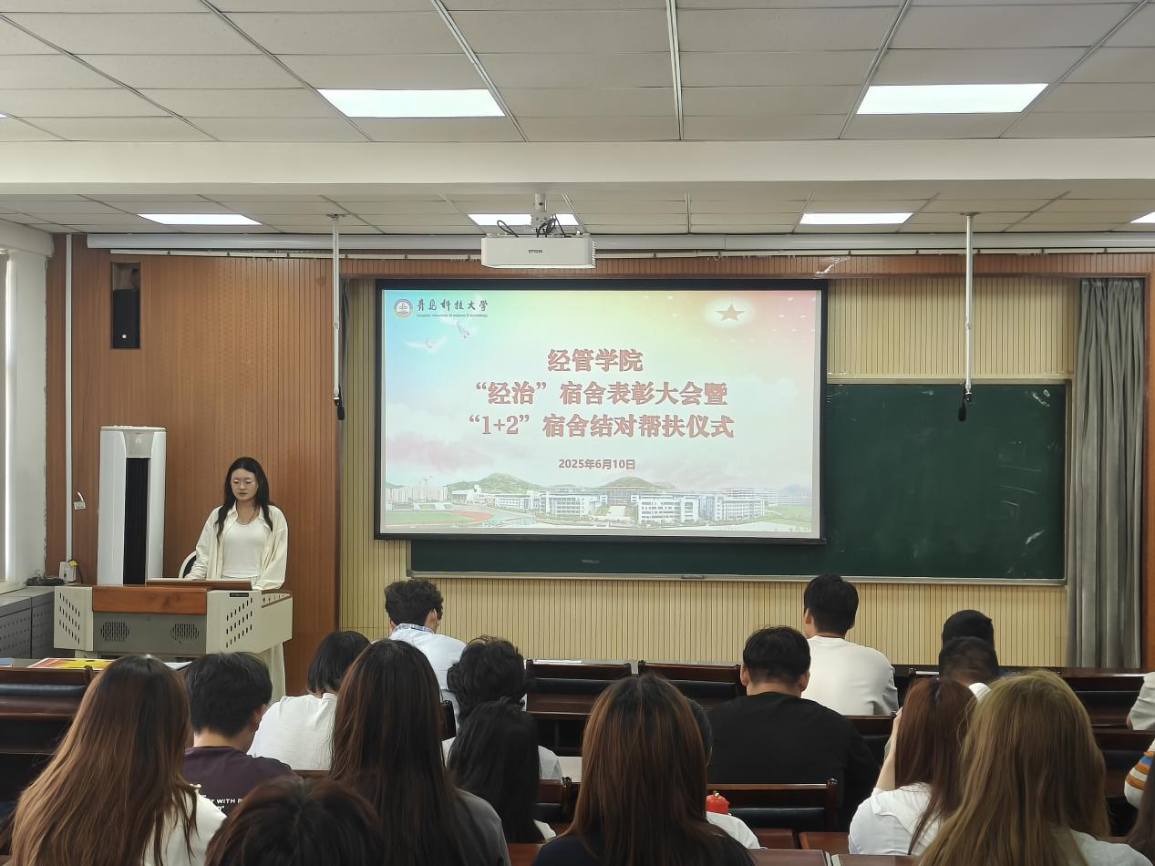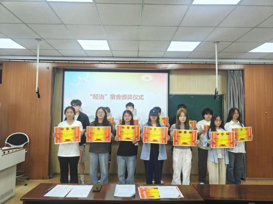 为进一步深化成长“共同体”理念,巩固学院宿舍文明建设成果,发挥“经治”宿舍榜样引领作用,促进宿舍间互助共进,6月10日,经管学院在经管楼419开展“经治”宿舍表彰大会暨“1+2”宿舍结对帮扶仪式。24级各宿舍舍长、学生会部分成员参加。