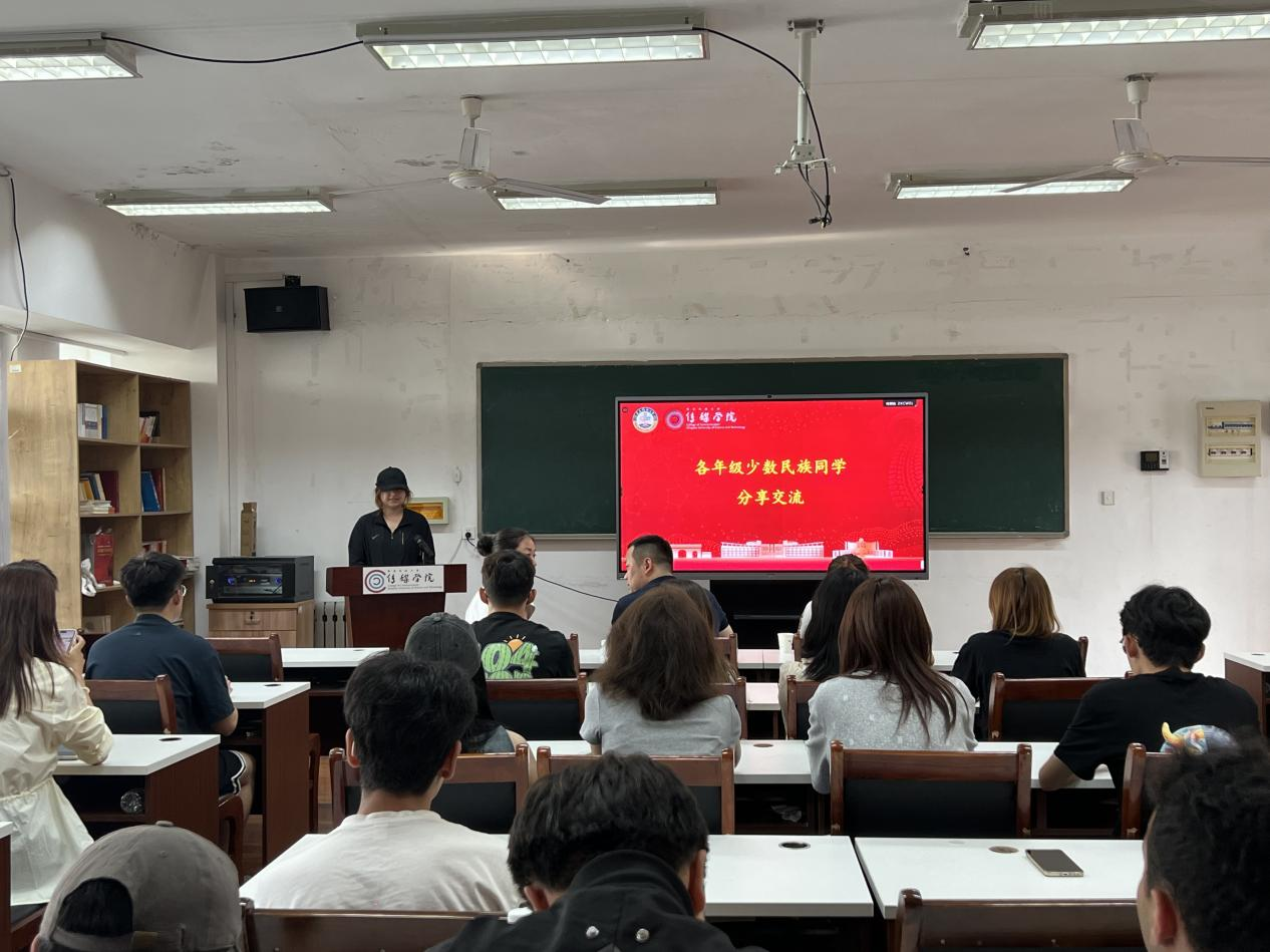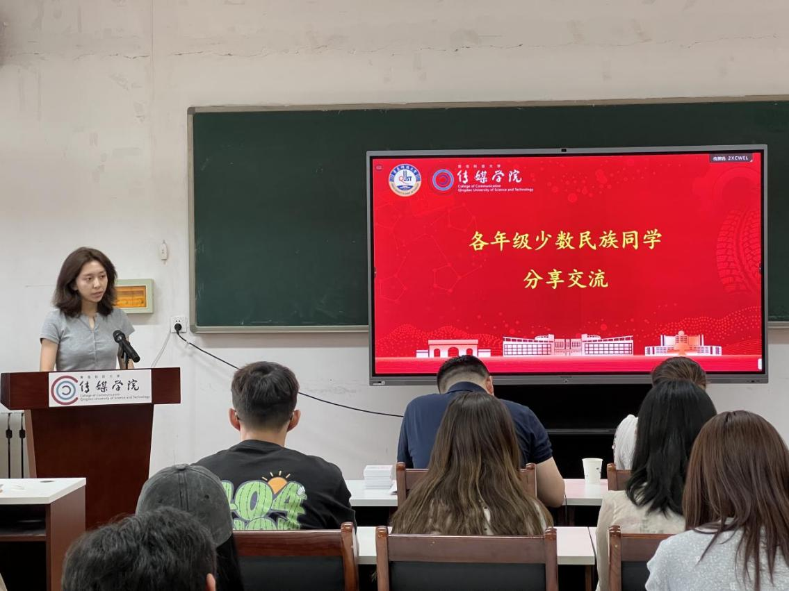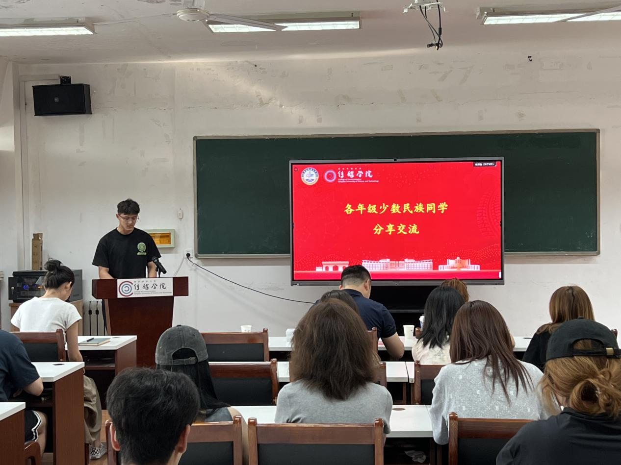 传媒学院本科生2022级曼祖热·巴吾东、2023级迪尔·巴哈提、2024级古丽孜巴·莫明作为各年级少数民族学生代表发言,他们分享了本学期学习、工作收获成长,各自民族文化习俗,以及今后思考规划,鼓励同学们多与老师沟通交流,积极参与社会实践,与各民族同学共同学习、共同进步,争做民族团结的传播者和践行者。