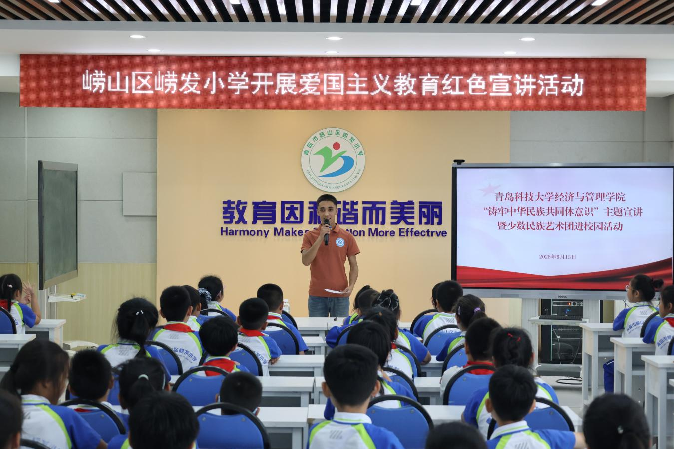 为深入贯彻落实习近平总书记关于教育工作的重要论述和习近平总书记关于加强和改进民族工作的重要思想,以实际行动践行民族团结进步理念,6月13日,经管学院赴崂山区崂发小学开展铸牢中华民族共同体意识宣讲暨少数民族艺术团进校园教育实践活动。