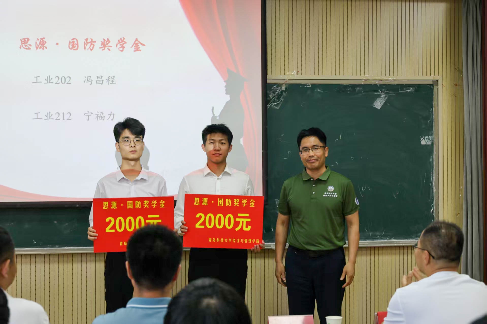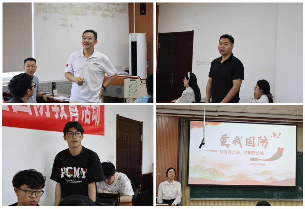此次活动邀请了市南区湛山街道盐城路社区的退伍老兵王继东、退伍复学大学生22级工程硕士王浩做征兵示范宣讲,23级金融专硕刘新悦讲授“爱我国防”主题微团课,并为近期成功入伍的优秀学生冯昌程、宁福力颁发经管学院“思源·国防奖学金”。