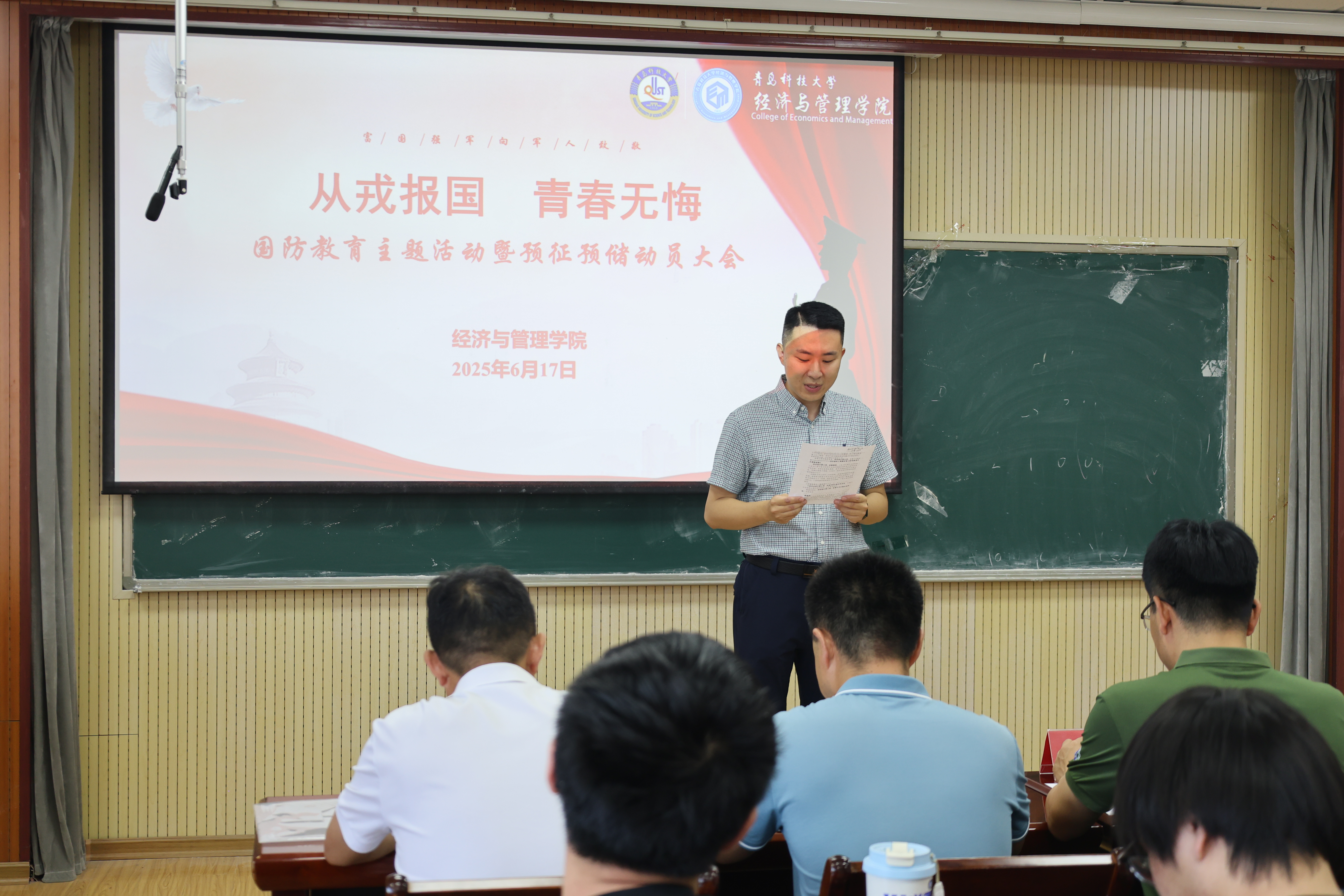 为深入贯彻落实习近平强军思想,加强国防教育,着力培养新时代青年学生的大局观念、家国情怀和奉献精神,强化精准育苗和兵源征集。6月17日,经管学院举办“从戎报国 青春无悔”国防教育主题活动暨预征预储动员大会。校党委学生工作部副部长兼武装部副部长李春家、学院党委副书记兼副院长牛宝卫、辅导员及22级本科生参加活动。