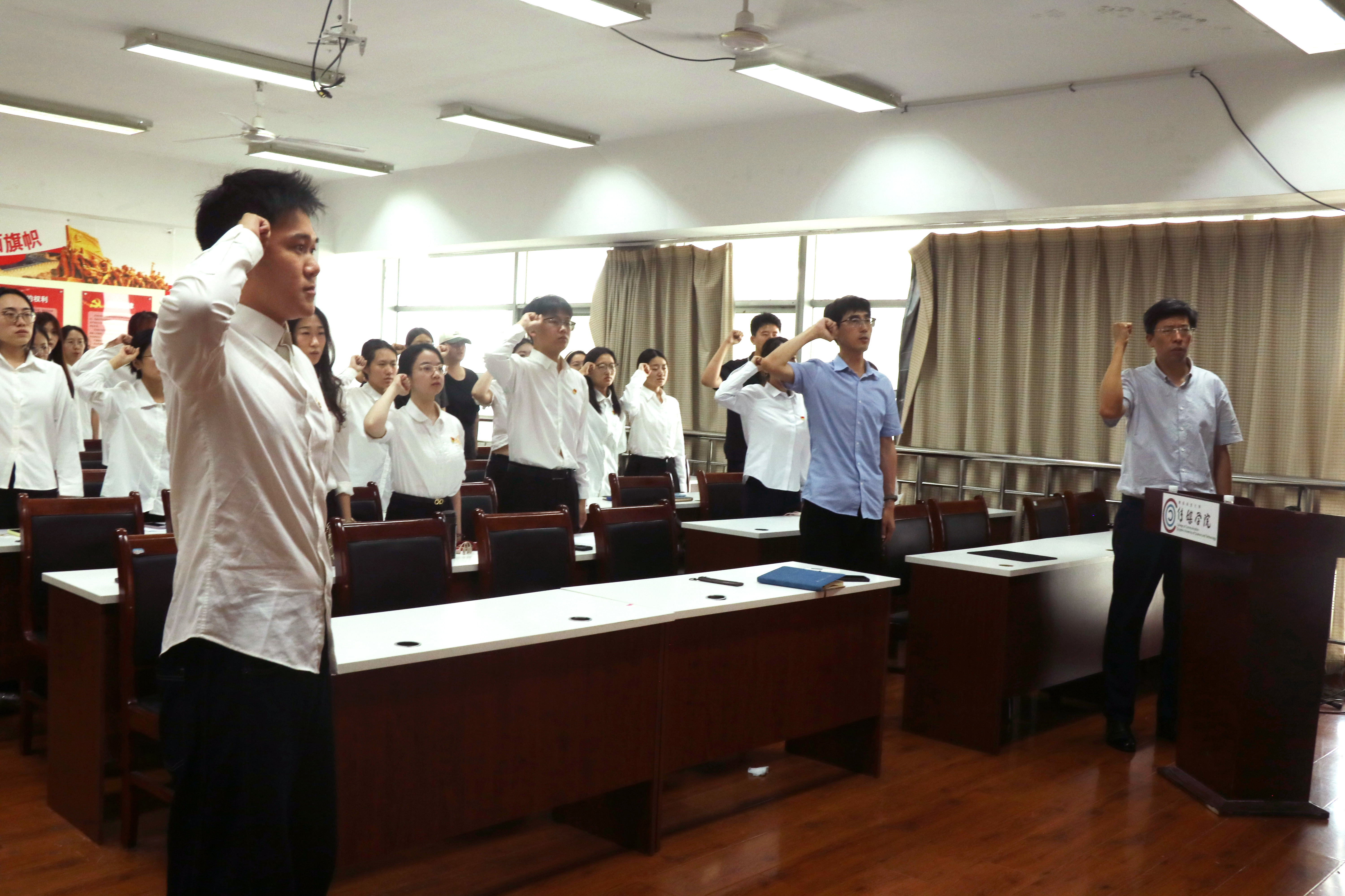 课堂最后,刘志国带领毕业生党员们庄重地举起右手,重温入党誓词;毕业生党员签署了《廉洁从业承诺书》。这堂课既是2025届毕业生党员离校前的“最后一课”,更是他们迈向人生新征程的“第一课”。与会党员纷纷表示,这堂专题课既是思想洗礼课,也是人生指引课,不仅体现了学院对毕业生党员的深切关怀与党性教育,更为他们踏上社会舞台注入了强大的精神动力。