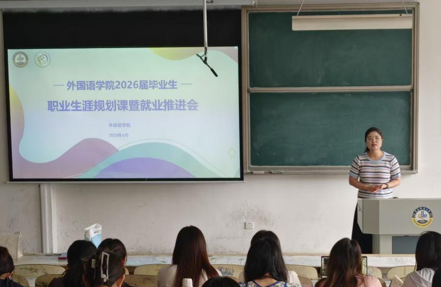为进一步深入贯彻落实学校就业育人工作部署,精准施策护航学生职业发展,外国语学院于6月21日召开2026届毕业生职业生涯规划课暨就业推进会,学院党委副书记兼副院长马寒、辅导员马耀青、企业代表及2026届毕业生参加会议。
