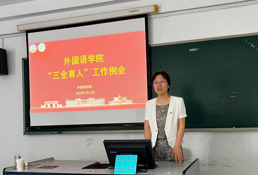 为落实立德树人根本任务,扎实推进“全员育人、全过程育人、全方位育人”工作要求,实现学习教育查摆问题的有效整改,7月15日,外国语学院组织召开“三全育人”工作例会暨心理工作专题培训会。学院党委书记曲斌艳出席会议,学生工作队伍、系主任、班主任、硕士生导师参加会议。