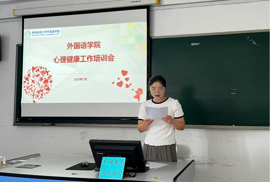 学院心理工作站站长马耀青聚焦大学生常见心理问题的识别与干预这一核心能力,结合具体案例,详细介绍了外语类专业学生在人际交往适应性、外语学习焦虑等方面可能存在的典型问题及其表现特征,带领与会人员学习了《天游ty8检测中心学生心理危机干预实施办法》,进一步明晰工作流程、处置规范和协同责任,强调对心理问题学生早发现、早识别、早干预的重要性。