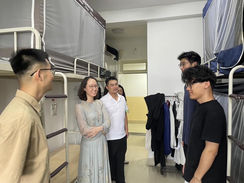 会后,丁一宁带领学工队伍走进学生宿舍,与宿舍楼长深入沟通,了解暑期宿舍升级改造情况;与已返校学生亲切交流,询问假期生活与返校适应情况;查看新生宿舍,排查安全隐患,确保新生入学后能拥有舒适、安全的居住环境。