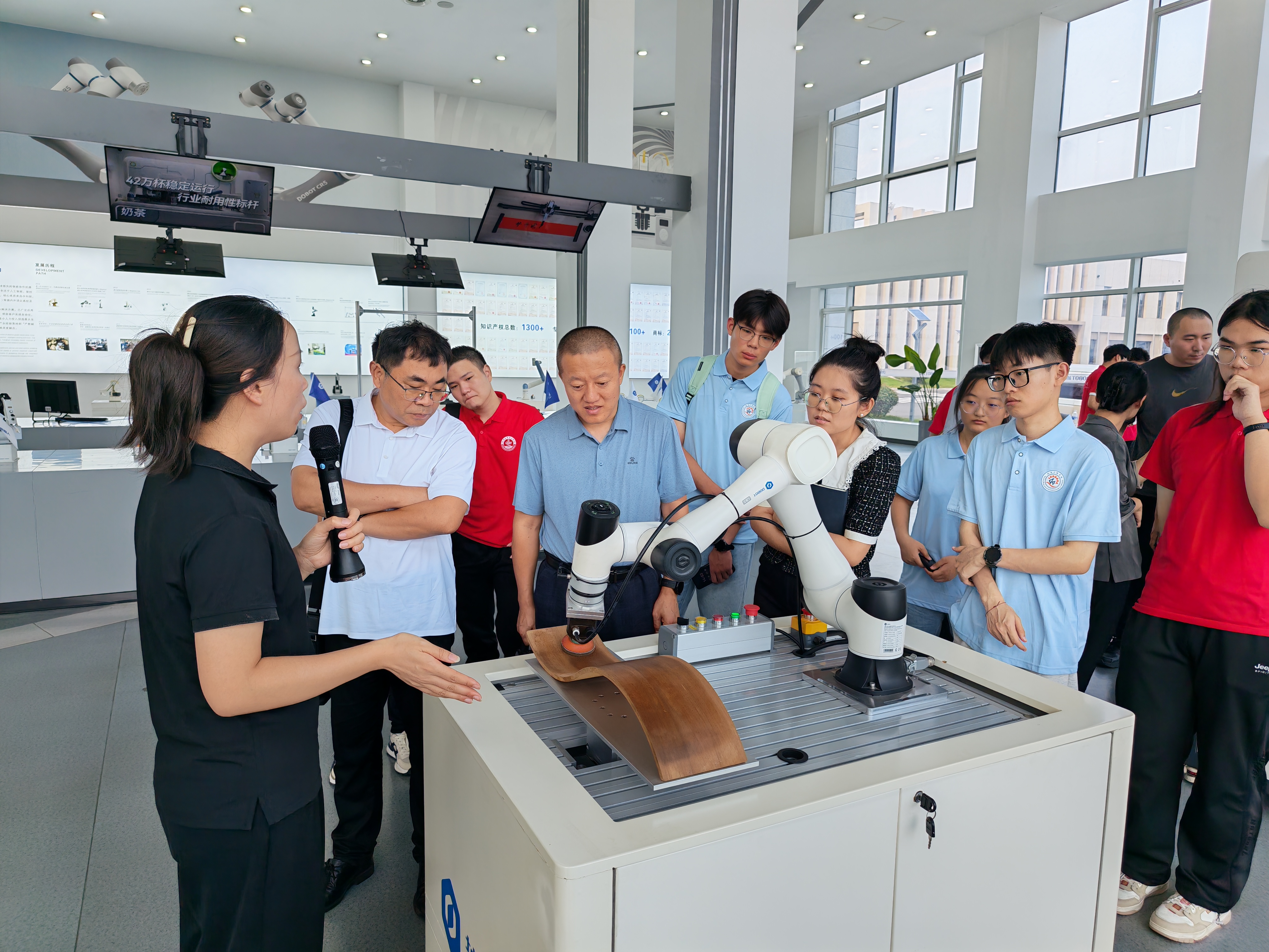 为深入推进2025届、2026届毕业生工作有效衔接,落实学校高质量安全就业工作部署和一线工作理念,8月29日,机电工程学院党委副书记杨小明、副院长杨化林、张卫锋赴越疆科技股份有限公司开展访企拓岗,越疆科技股份有限公司教育事业部华北区总监徐睿含、教育事业部高级经理刘杰、人力行政部制造中心经理刘亚斌等人陪同调研,辅导员杜康、许婷婷和学院12名2026届毕业生参加活动。