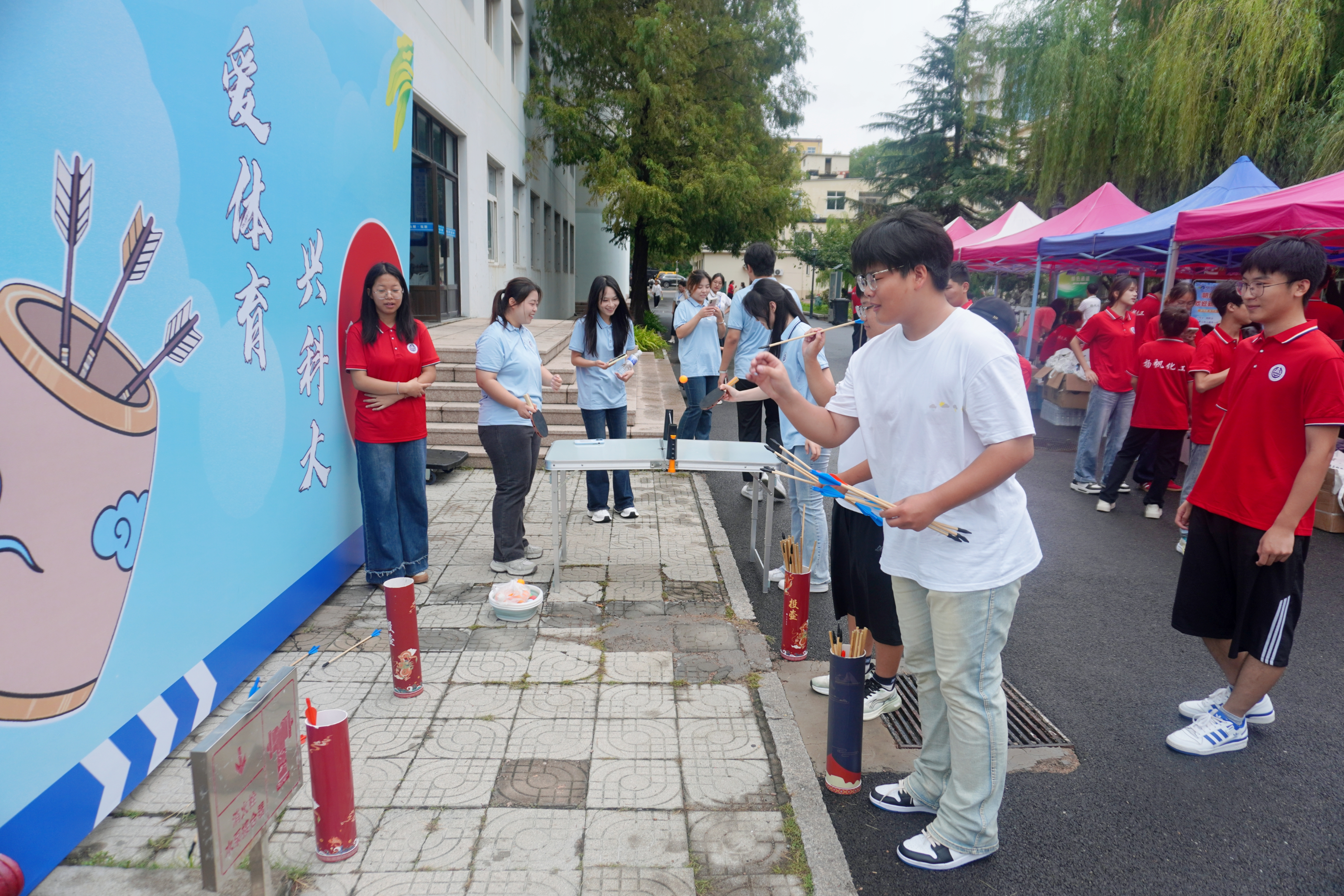 以竞技焕活力,践行体育精神。为深入践行学校“爱体育·兴科大”育人理念,学院在迎新报到处设“活力迎新・运动燃情”体育挑战赛专区,设置投壶、乒乓球等项目。让新生在竞技中释放活力,在协作中快速熟悉彼此,让“以体育人”的理念在实践中深入人心。