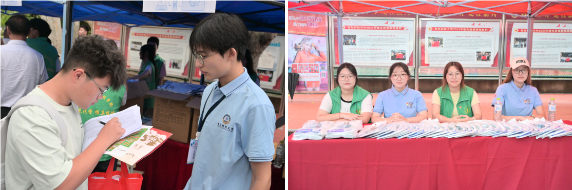 遇见化学启新程。新生踏入学校的那一刻,新的征程便拉开序幕。为拓宽新生及家长对化学院了解的渠道,学院在迎新点引导新生关注“微观化院”微信公众号,并邀请新生和家长在“你好,锌铜学!”主题喷绘前留影,镌刻下踏入青科大的第一份纪念。现场还举办“青春寄语”活动,引导新生与家长共同书写梦想明信片,等待四年后启封验算成长的轨迹。