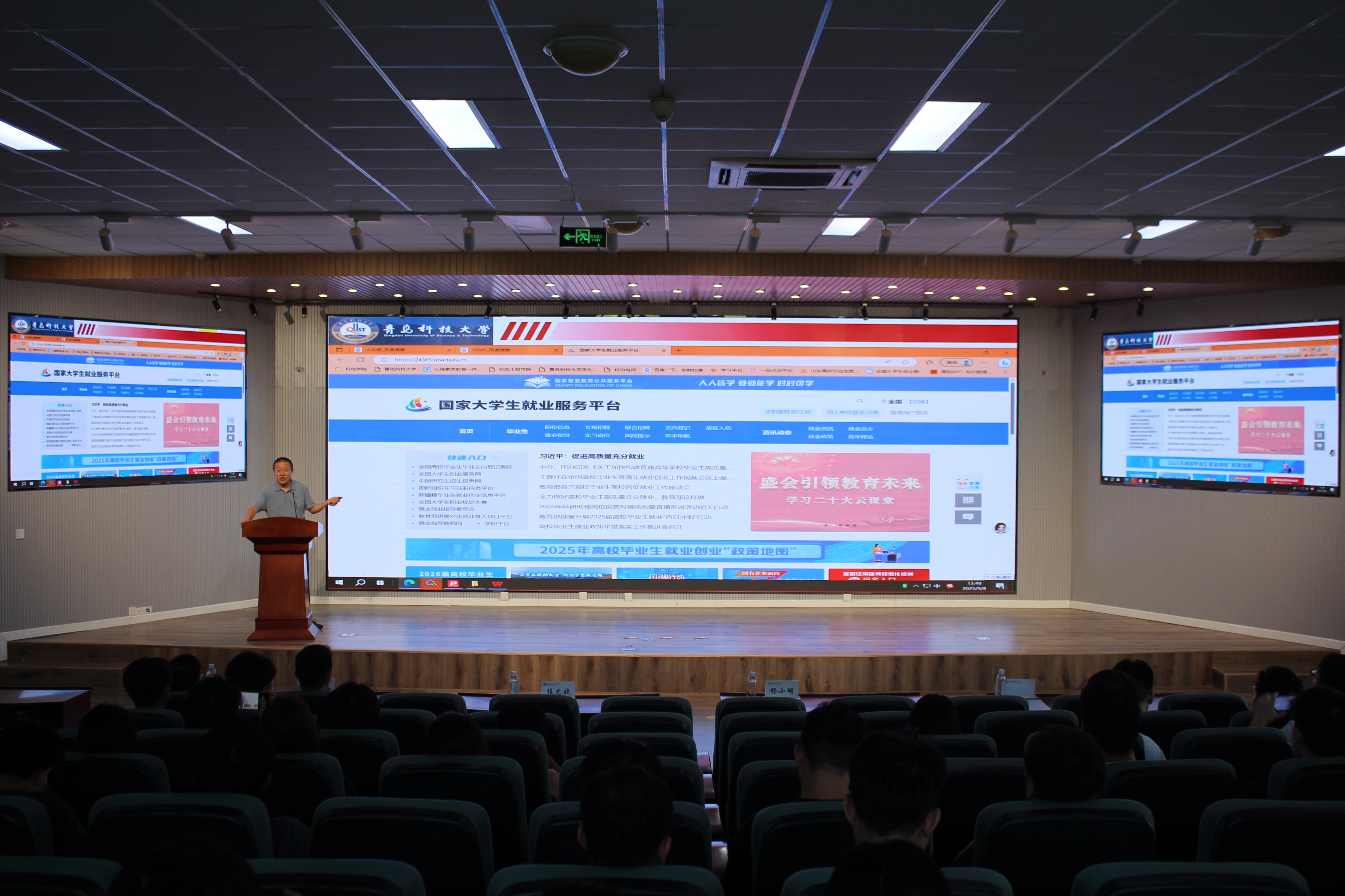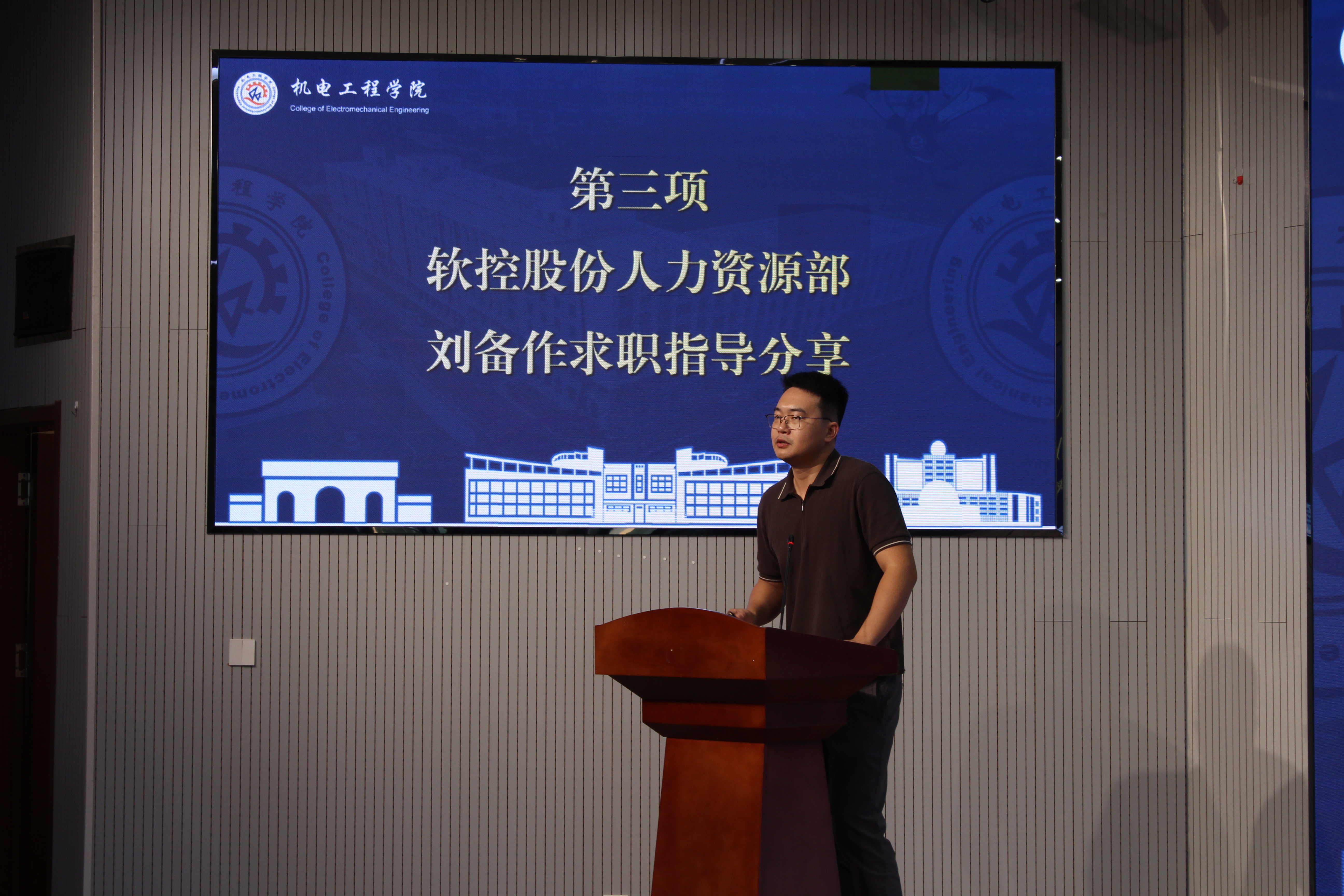 9月9日,机电工程学院在机电楼D3-530会议室举行2026届研究生就业开学第一课。学校就业指导中心副主任孙一君、软控股份有限公司人力资源部刘备受邀作专题分享。学院党委副书记杨小明主持会议,2026届研究生学生骨干近百人参加就业开学第一课。