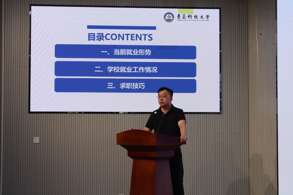 孙一君以“就业形势与求职指导”为题,从当前就业形势、学校就业工作情况、求职技巧三个维度进行分享。孙一君首先结合国家及山东省关于高校毕业生就业的最新政策,强调“稳就业”“保就业”的政策导向。孙一君通过详实数据指出当前就业市场的整体态势,介绍了天游ty8检测中心2024届、2025届毕业生就业整体情况,尤其是机电工程学院研究生的毕业去向分析,毕业生在万华化学、赛轮集团、软控股份等知名企业的就业分布,为同学们树立就业信心。最后,孙一君聚焦研究生求职痛点,围绕求职渠道、简历撰写等内容进行讲解,指导同学们清晰人生规划,科学研判,明确个人求职路径方向。