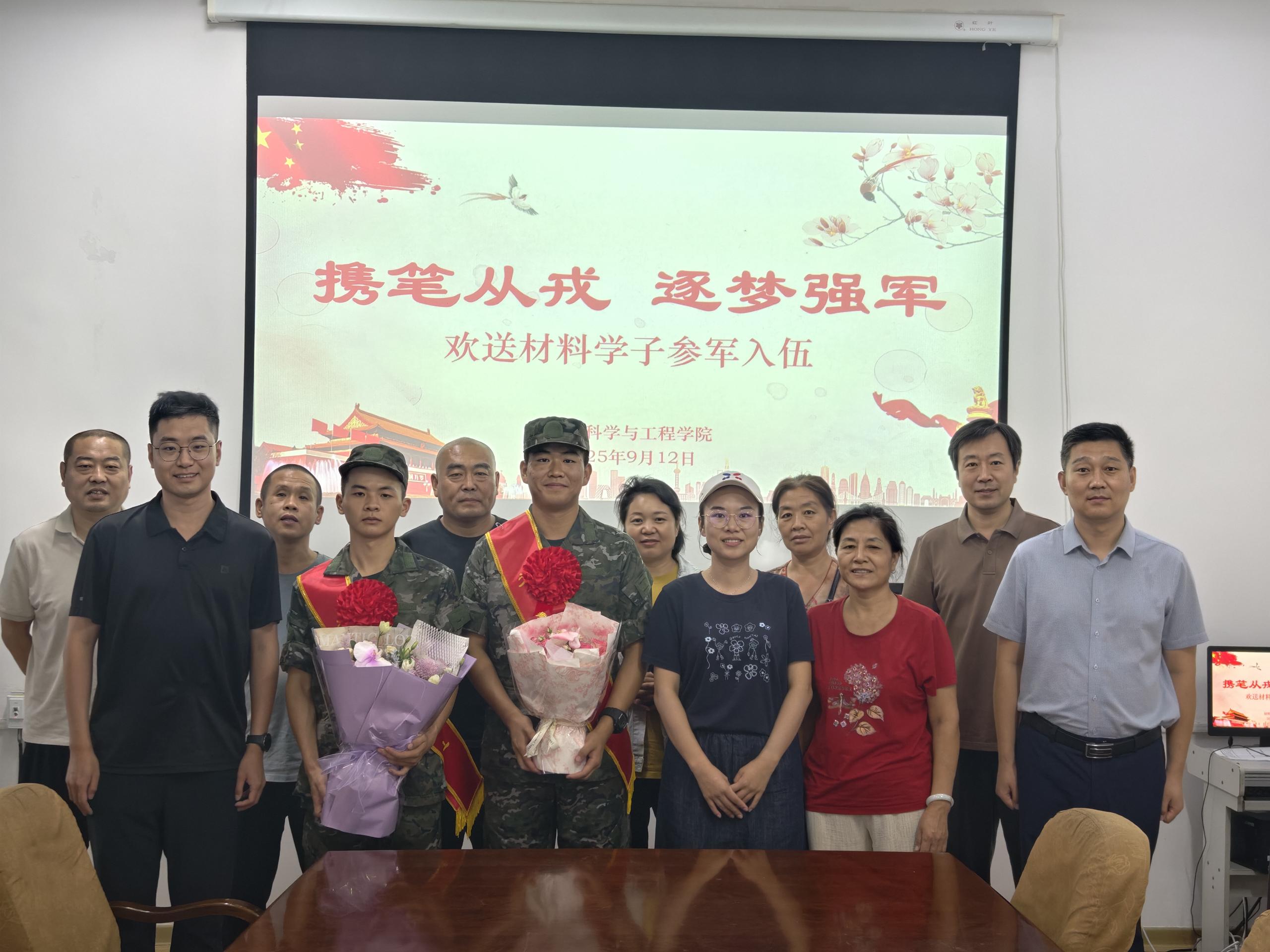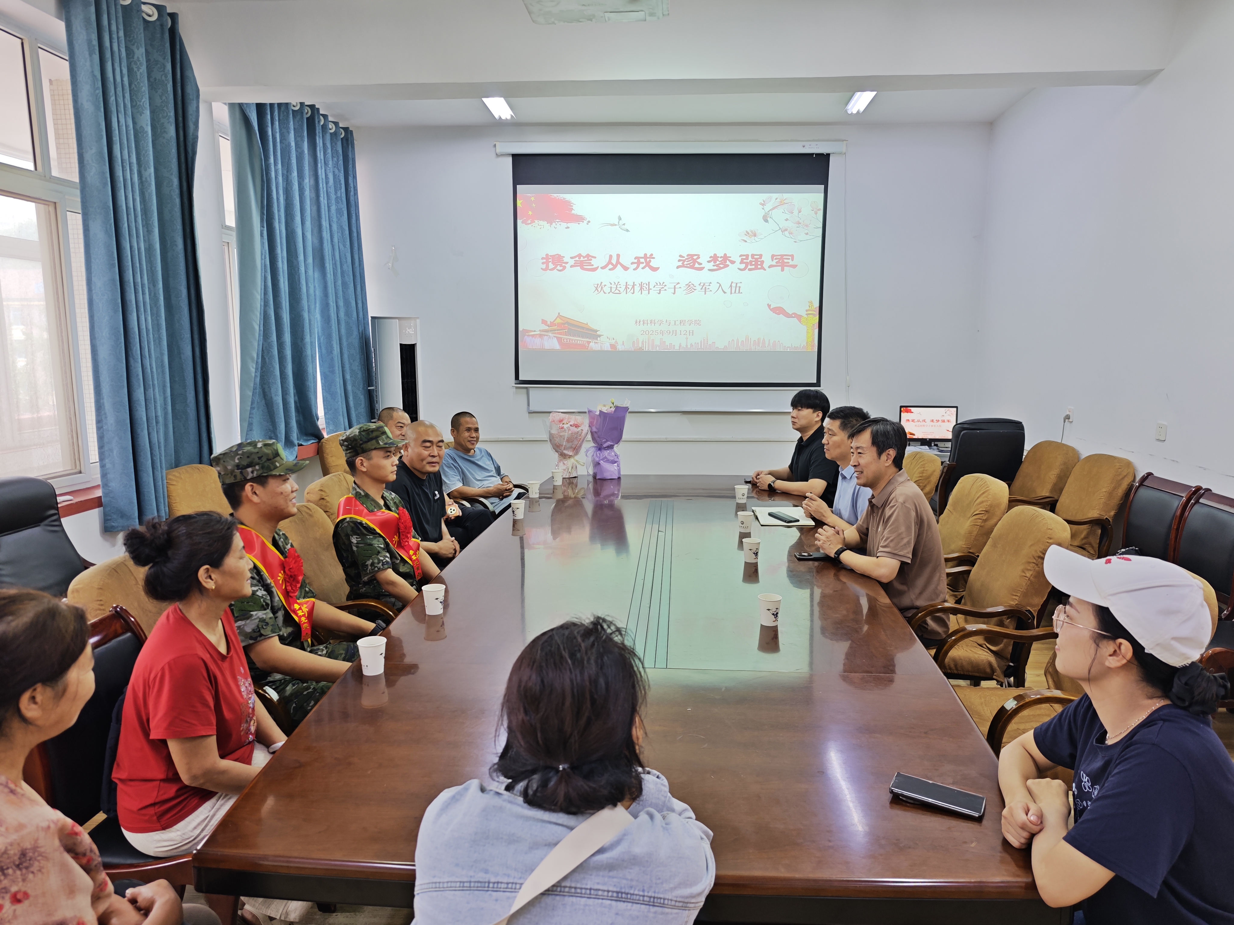 会上,孟照国代表学院向积极响应国家号召、携笔从戎的优秀学子们表示热烈的祝贺和崇高的敬意。他表示,参军入伍是无上光荣的人生选择,是报效祖国、服务人民的具体行动。他希望同学们到了部队后,要牢记“明德、笃学、弘毅、拓新”的校训,发扬材料人吃苦耐劳、坚韧不拔的精神,迅速转变角色,刻苦训练,努力学习军事科技知识,早日成为一名政治合格、军事过硬、作风优良的新时代优秀军人,为国防和军队现代化建设贡献自己的青春和智慧。