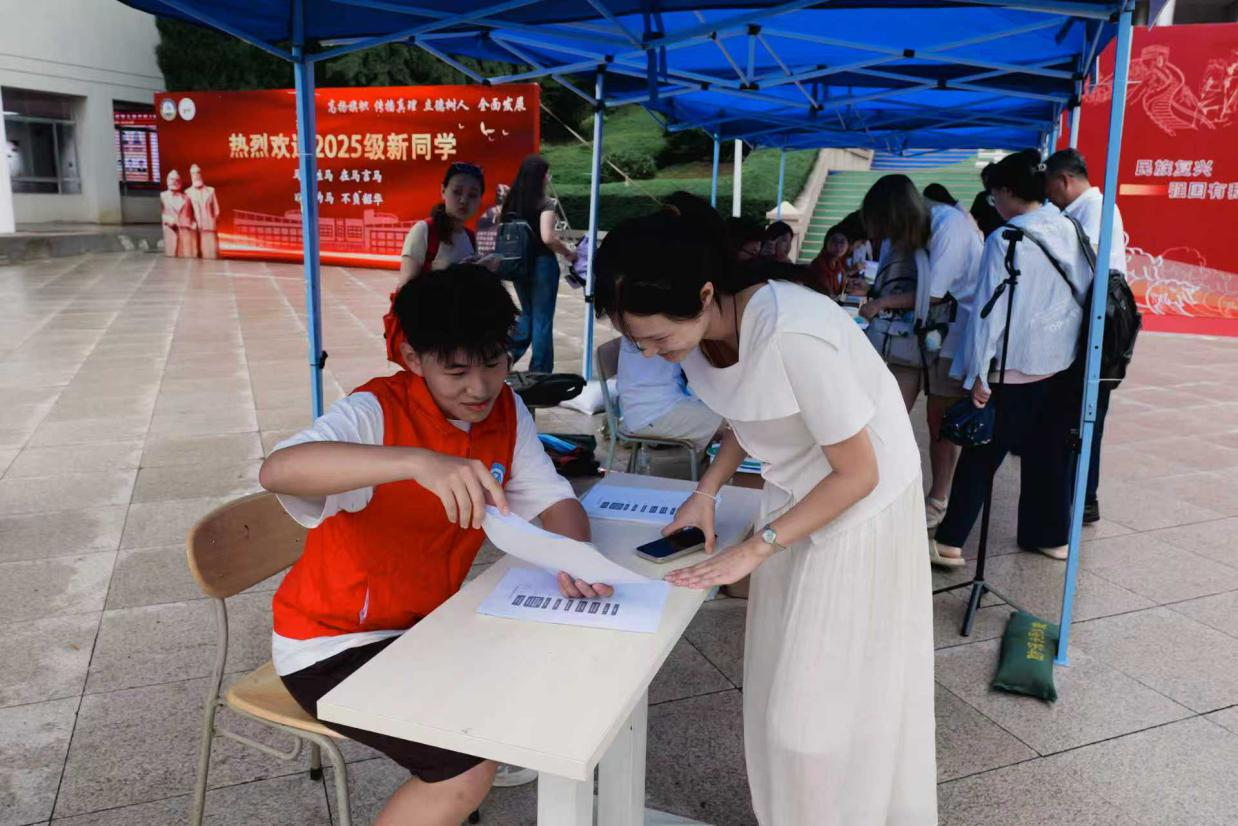 绿色通道“暖”人心,贴心服务减顾虑。迎新现场,学院特设“绿色通道”专属区域,打造“一站式”入学服务平台,将信息登记、身份核验、入学注册等环节集中整合,让家庭经济困难新生无需繁琐流程即可顺利报到。现场邀请历年获得奖助的学长学姐担任“资助宣传大使”,针对助学贷款办理、勤工助学岗位申请、奖助学金申报条件等问题,为新生提供一对一细致讲解,做到“有问必答、应助尽助”。学院领导与老师也亲临迎新点,与新生及家长亲切交流,送上包含学习用品与暖心寄语的入学礼包,用实际行动传递关怀与温暖。