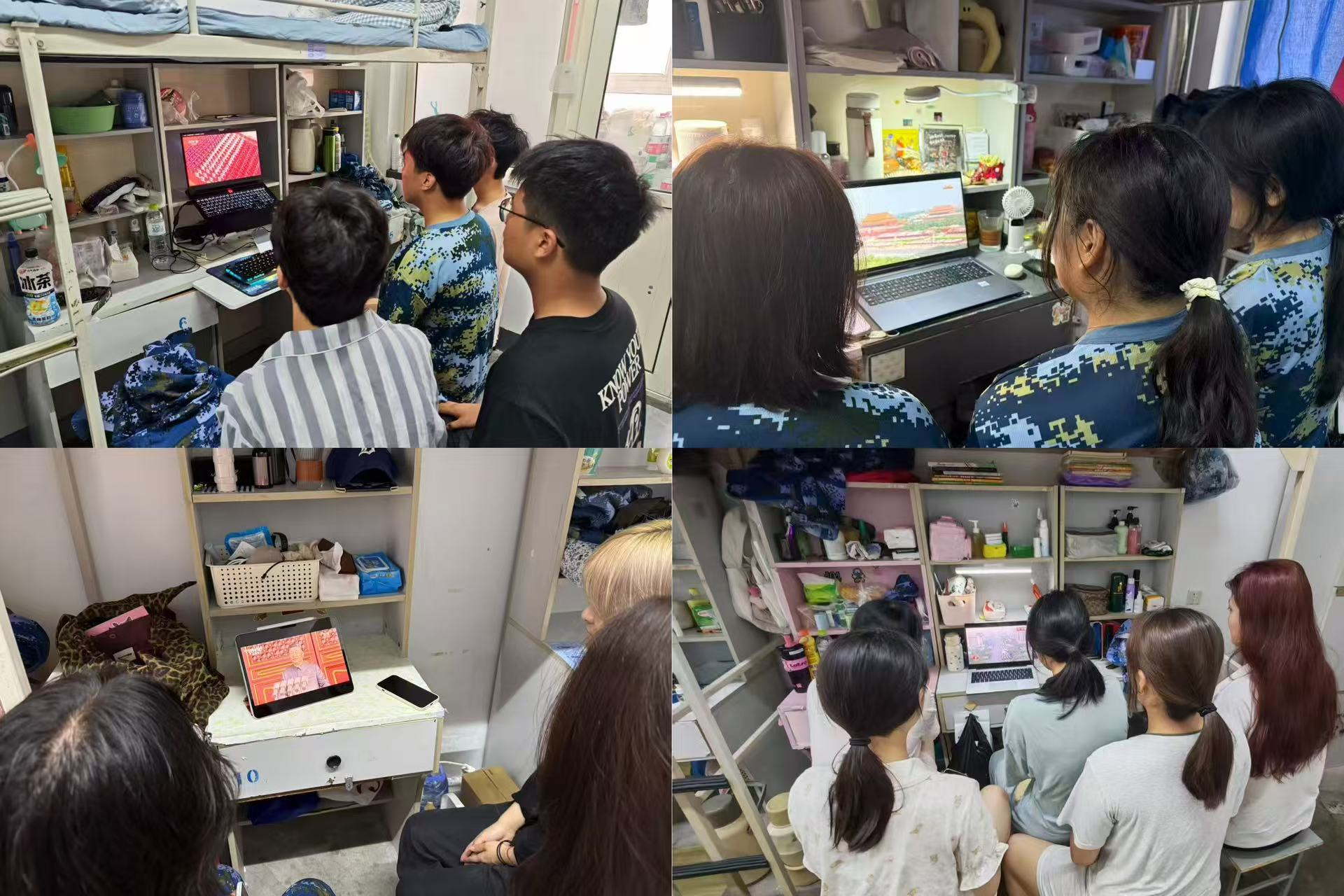 9月12日下午,学院组织2025级本科生以宿舍为单位集体观看了纪念中国人民抗日战争暨世界反法西斯战争胜利80周年阅兵仪式视频。辅导员张凤老师深入学生宿舍,与同学们共同观看精彩瞬间,并亲切慰问新生的入校军训和生活适应情况。这不仅是一次生动的爱国主义教育,更增强了同学们的集体荣誉感和宿舍凝聚力。