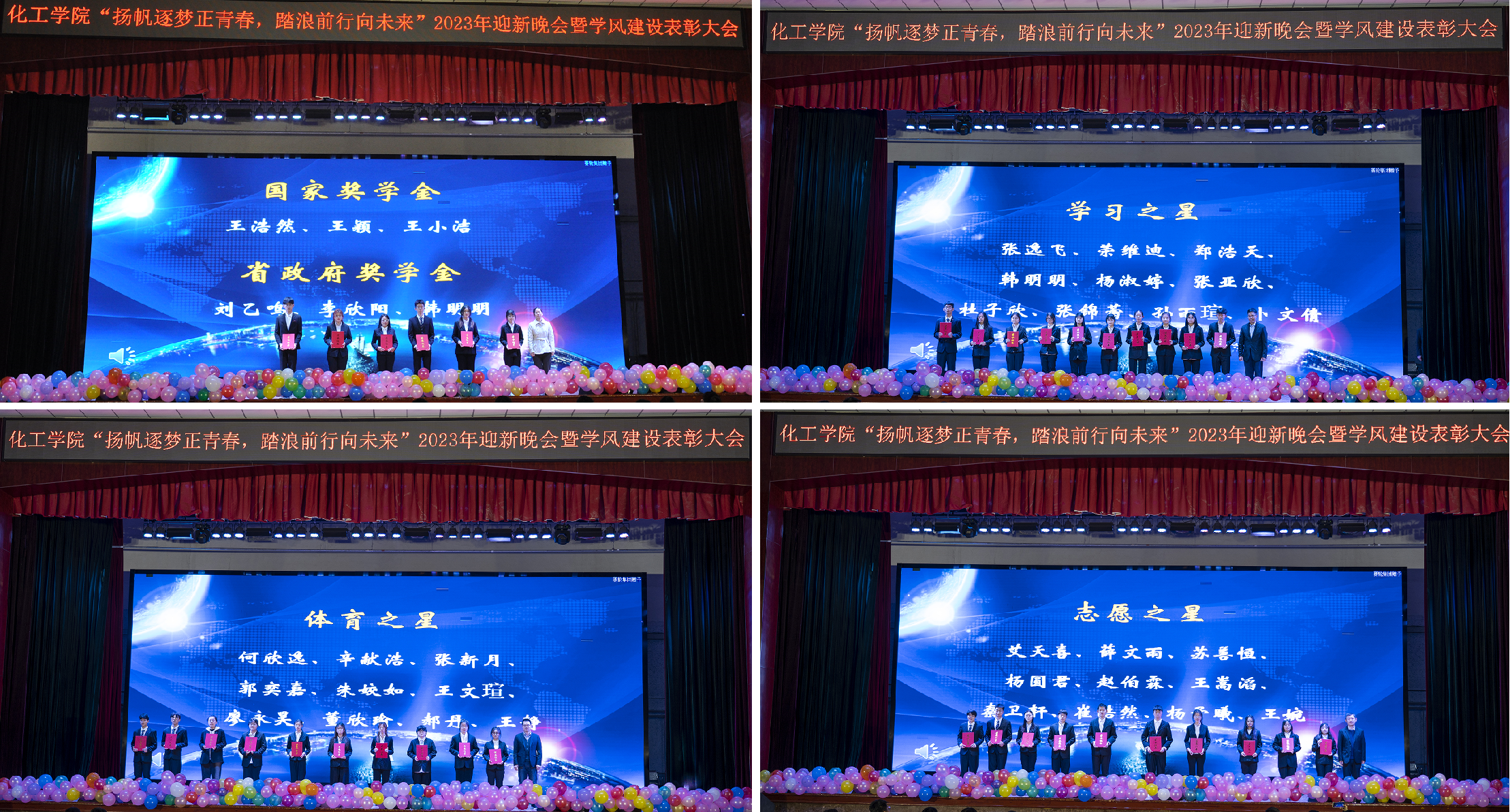 近日,化工学院"扬帆逐梦正青春,踏浪前行向未来"2023年迎新晚会暨学风建设表彰大会在四方校区西礼堂举行,学院党政领导、辅导员、班主任、优秀学生代表和2023级新生齐聚一堂。