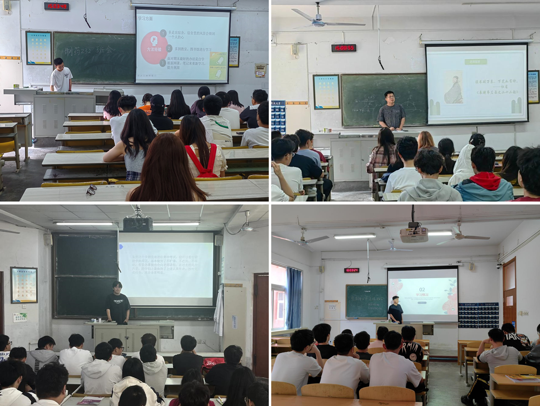 会上,各班级总结回顾了上半学期的学习情况和课堂表现,结合学生手册的纪律处分管理规定,提醒同学们增强自我管理意识,严守课堂纪律,做到不迟到、不早退、不旷课。辅导员和班主任针对接下来即将进行的四六级考试和期末考试,鼓励学生们制定明确的学习计划,克服懒惰和拖延,提高复习效率;同时鼓励同学们结合专业特色,及时关注并参与近期学校组织的中国国际大学生创新大赛、大学生创新创业训练计划立项、创客大赛等科创赛事,培养自身创新实践和解决实际问题的能力。