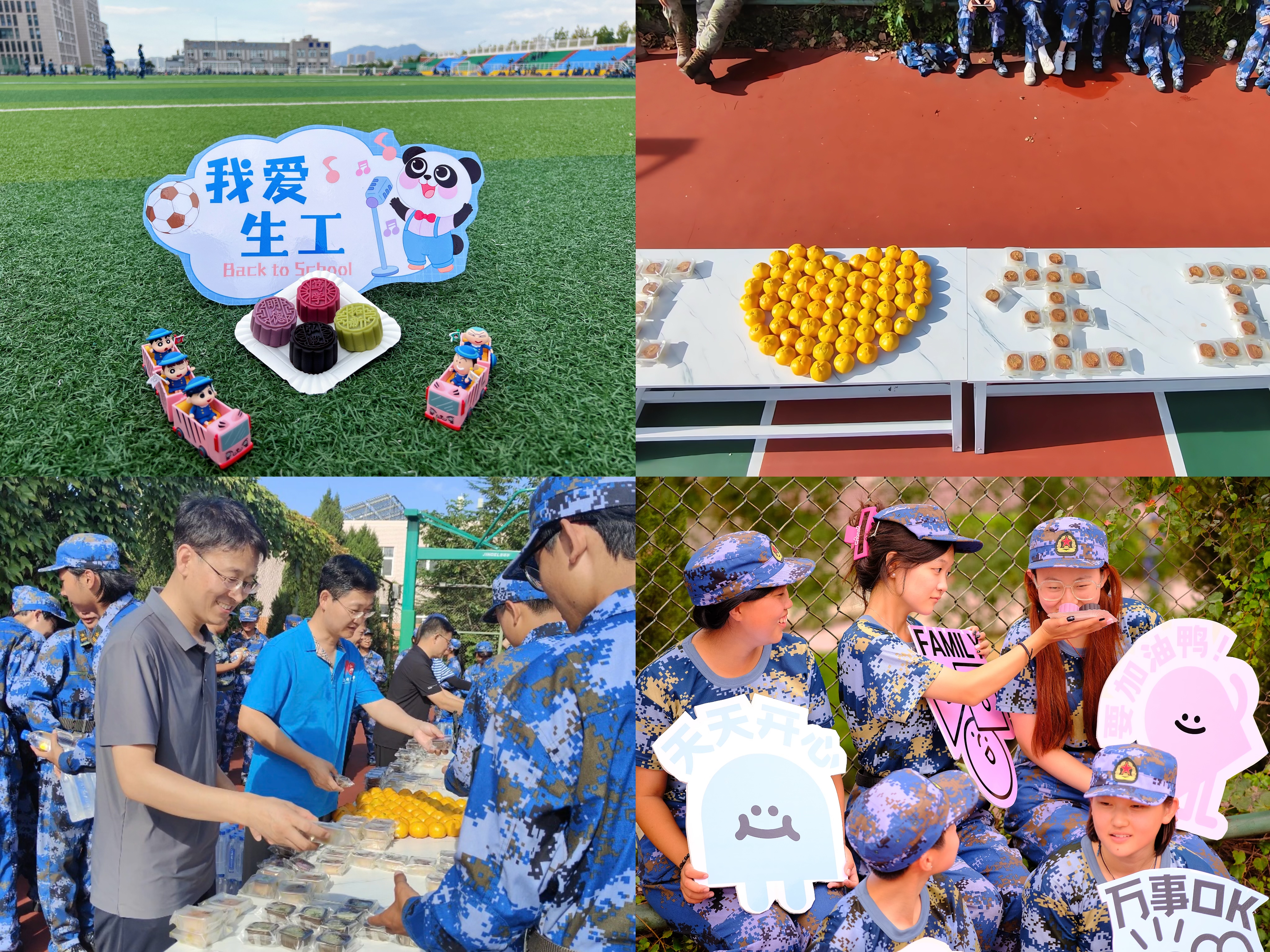品月试酥饴·共品月饼。为了增强学生的归属感和幸福感,党政领导班子前往学院2024级新生的军训场地,慰问所有参训学生和带训教官。在军训休息期间为学生发放科大专属月饼和水果,以实际行动表达对新生的关怀和期许,传递节日的温暖与祝福。