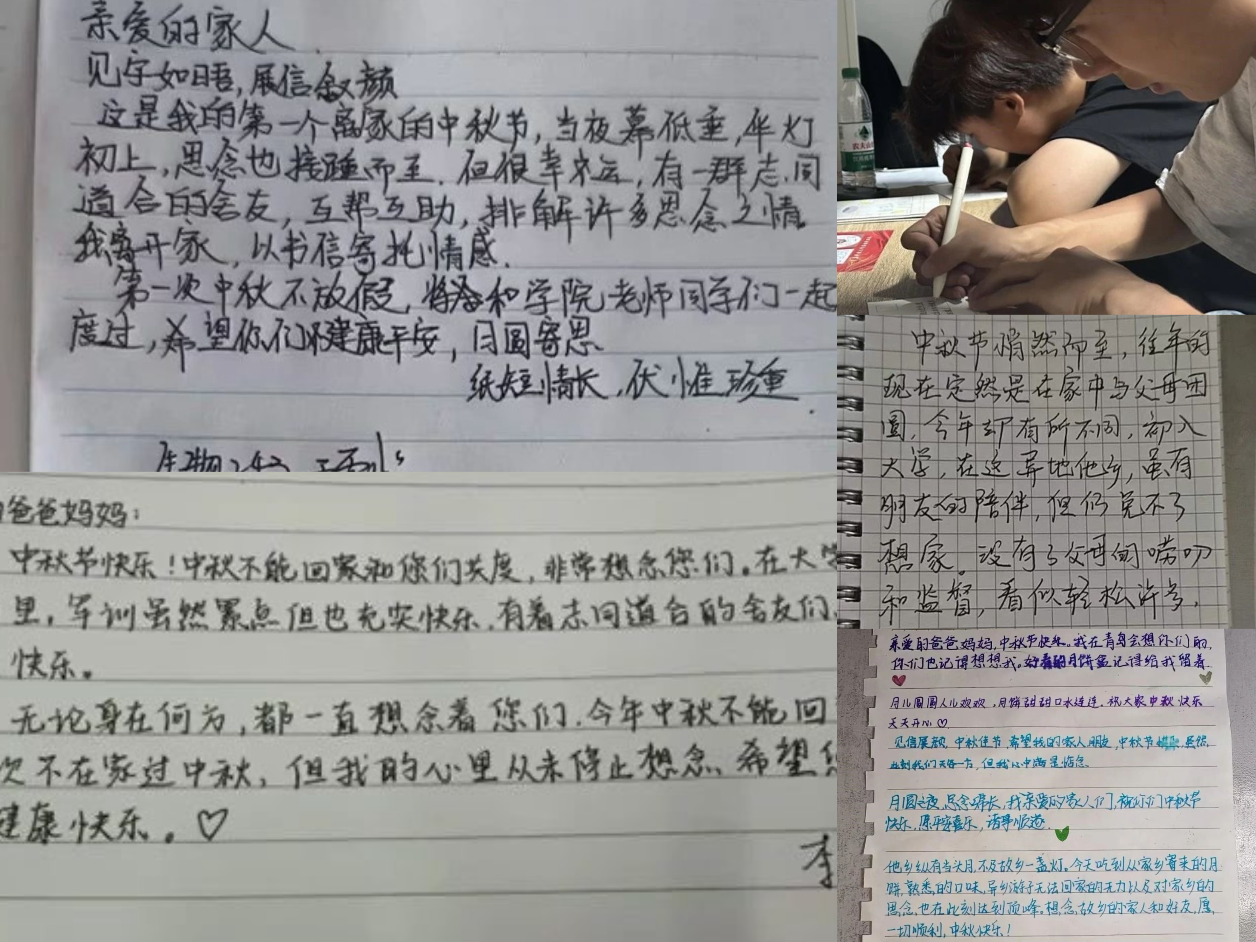 相思寄鸿雁·书信寄情。独在异乡为异客,每逢佳节倍思亲。今年的中秋佳节,同学们第一次远离家乡和父母,在大学校园过节,更加思念家人。大家坐在一起,每人几张信纸、一支笔,写出心中对亲人和故乡的思念。