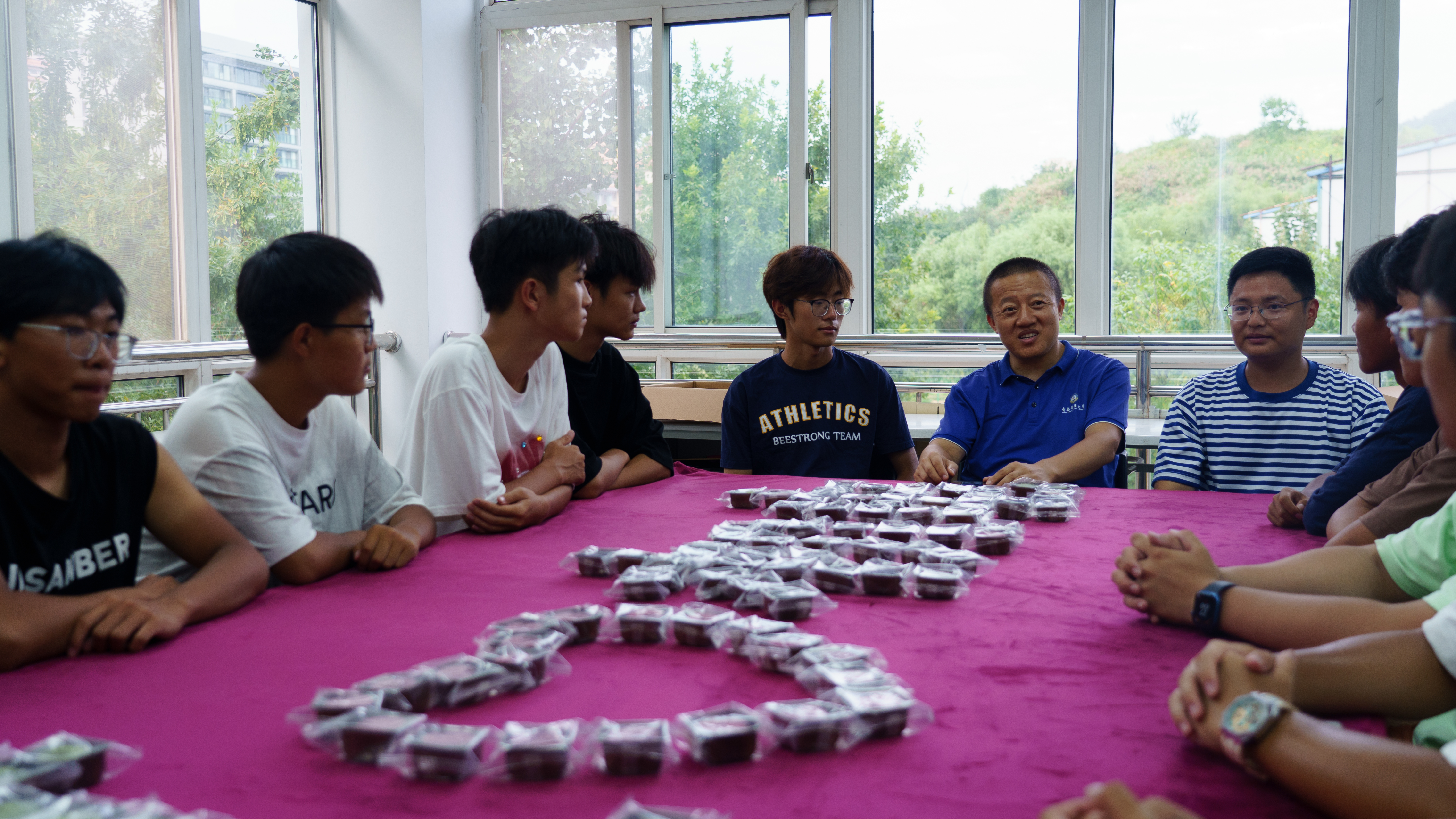 9月15日、9月17日,杨小明和学工办相关辅导员老师一同向大四研三毕业班同学和大一研一新生同学发放青科定制月饼,将学院的祝福和关爱传递给毕业班同学和新生同学。希望毕业班同学能够认真做考研、就业的行动派,希望新生同学能够快速适应大学生活,只争朝夕学知识,脚踏实地做科研。9月15日,学院专门组织“机凝石榴籽、智绘同心圆”少数民族中秋座谈会。
