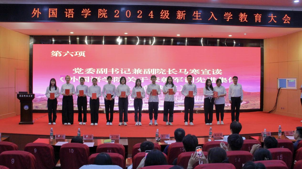 会上,马寒宣读了《外国语学院关于表彰军训先进集体和个人的决定》,并为先进个人颁发证书。刘靖宣读了《外国语学院关于聘任2024级领航学长的决定》,并为领航学长代表颁发聘书。