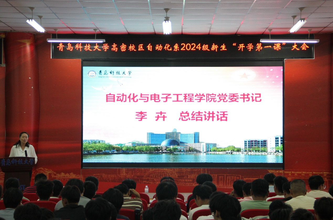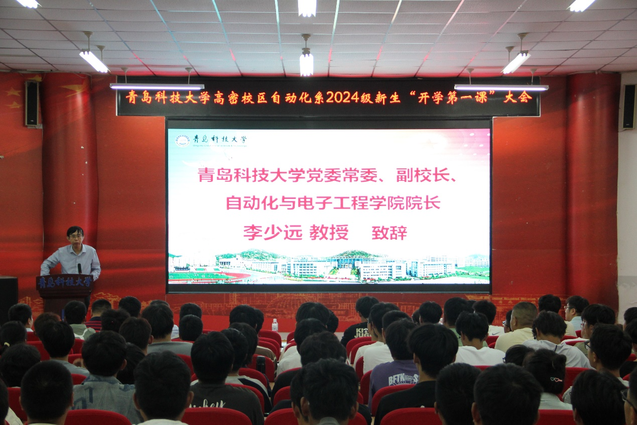 9月24日,高密校区自动化系在通德会堂201举行2024级新生“专业第一课“入学教育大会。校党委常委、副校长兼自动化与电子工程学院院长李少远,自动化与电子工程学院党委书记李卉,高密校区管委会常务副主任张青山,校区党委书记马骥,校区党委副书记兼校区学生管理办公室主任王作辉,教学管理办公室主任曹新明,自动化系教师代表、辅导员、新生班主任出席大会。会议由自动化与电子工程学院副院长兼高密校区自动化系主任张典主持。