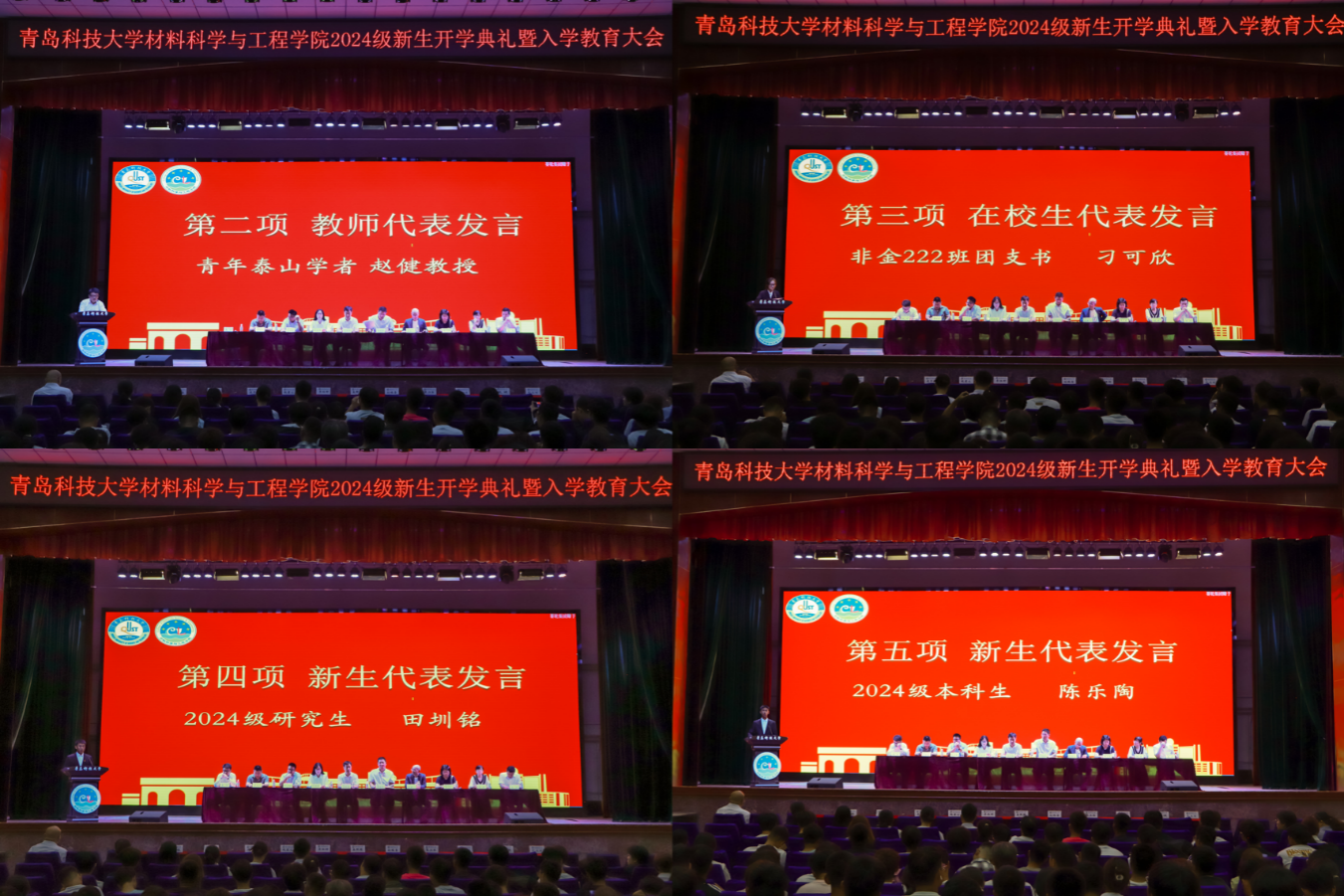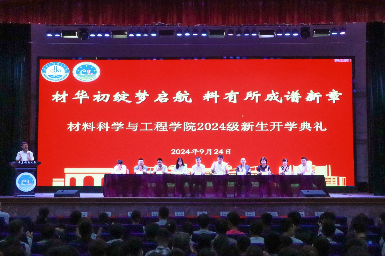 2024年9月24日下午,材料学院于四方校区西礼堂举行2024级新生开学典礼暨入学教育大会。学院党委书记孟照国,院长李桂村,副院长孙瑞雪,校医院卫生健康办公室纪永丽,校友代表深圳市安泰克科学仪器有限公司总经理赵星之、上海兆象有限公司创始人张江红,各教研室主任、新生班主任、辅导员及2024级新生参加大会。大会由学院党委副书记兼副院长葛夫国主持。