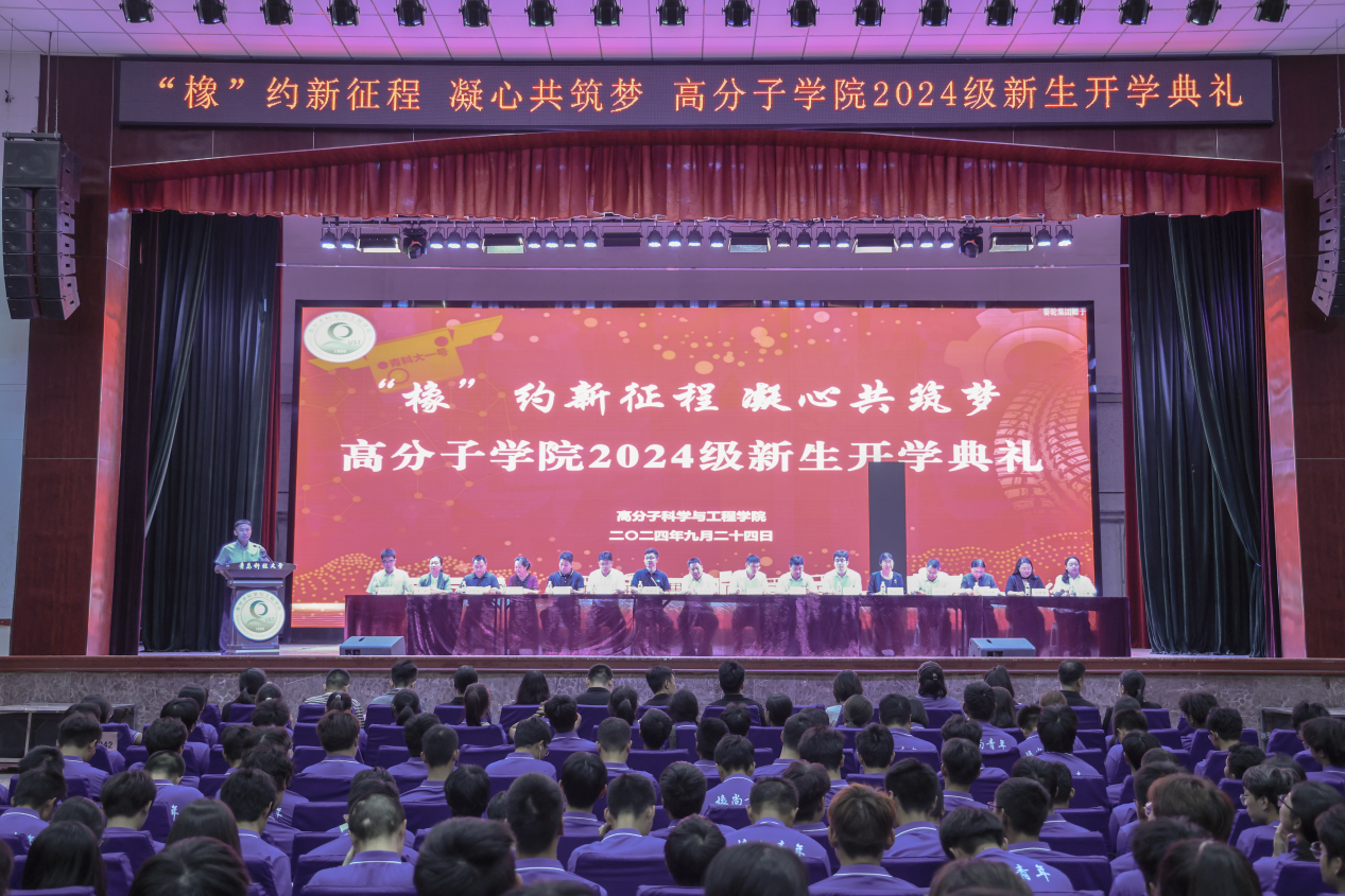 9月24日下午,高分子学院“‘橡’约新征程 凝心共筑梦”2024级新生开学典礼暨班主任聘任仪式在四方校区西礼堂隆重举行。学院院长张建明、党委书记宣宗伟、副院长王庆富、副院长孙举涛、副院长刘恒、各教研室主任、全体班主任、全体辅导员以及2024级全体新生参加了本次大会。大会由党委副书记兼副院长贾明明主持。