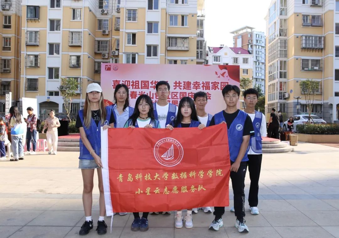 数据科学学院通过多样仪式教育,引导学生胸怀信仰,激发爱国主义伟力。研究生党支部开展“数据科技助力国庆”专题全体党员大会、本科生党支部开展《习近平与大学生朋友们》主题学习等,各团支部召开专题团日活动,党团员代表就学习收获和体会进行重点发言;学院“小星云”志愿服务队赴春光山色社区志愿服务大集,开展“喜迎国庆,情满社区”志愿服务活动,在社会大课堂中展现新时代大学生的风采。此外,学院积极响应“爱体育,兴科大”号召,组织开展了“‘数’迎国庆,奔向未来”荧光夜跑活动,以动感步伐庆祝新中国的生日。