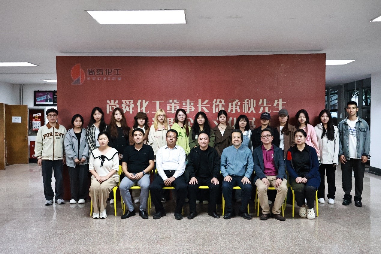 为进一步凝聚校企合作力量,探索校企协同育人的人才培养模式,全面提升学生的综合素养,10月18日下午,尚舜化工董事长徐承秋先生诗词暨企业文化展览活动在崂山校区艺术学院美术馆举行。1996届校友、尚舜化工办公室主任潘鹏勇,艺术学院院长李宏文,党委书记刘庆出席活动。活动由刘庆主持。