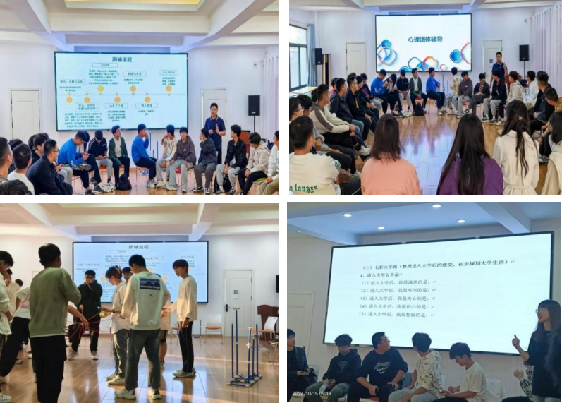 团辅同乐,活力满格。为培养学生乐观坚韧的良好品格特征,塑造和谐融洽的班风,在学校心理健康教育与咨询中心的安排部署、指导帮助下,2024级辅导员积极开展班级团辅活动,规定动作不走样,自选动作有特色。在辅导员的带领下,各班根据班级特点,以游戏、问答、素质拓展等形式进行丰富多彩的班级团辅活动,在热情洋溢中散发青春活力,促进了师生之间、同学之间的情感交流与心灵互动,增强了班级凝聚力。