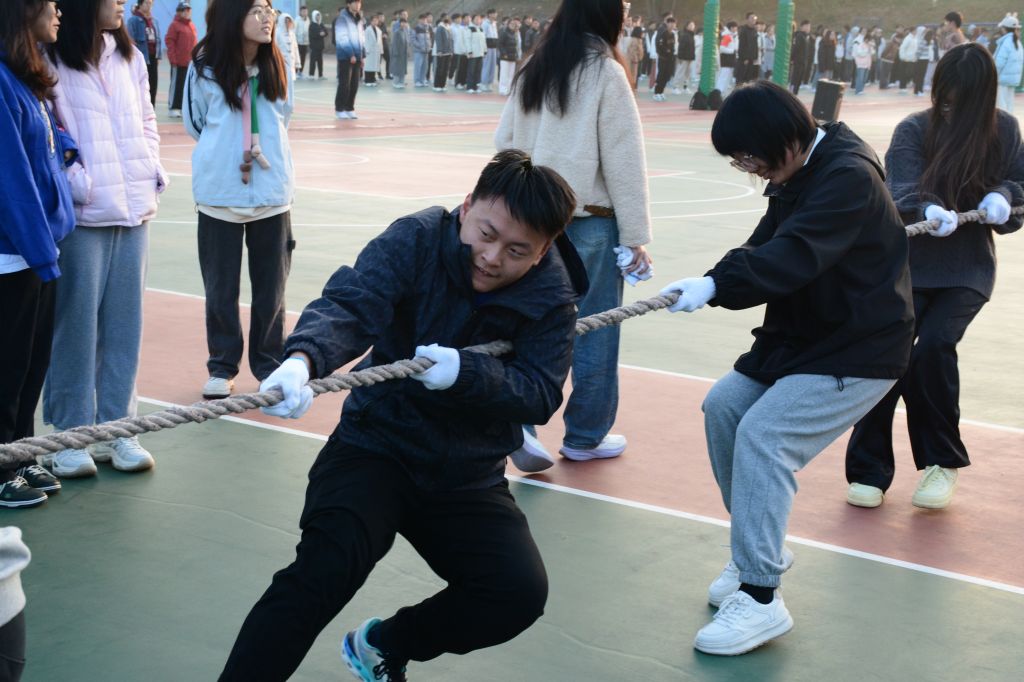 本次比赛吸引了2024级全体学生参与,比赛共有十五支队伍,同学们齐心协力,为自己的队伍全力以赴。随着比赛的开始各个队伍按照提前安排好的比赛顺序开始进行拔河比赛,同学们相互配合、共同发力,将合作精神展现得淋漓尽致。这种齐心协力的精神将团队凝聚成一股强大的力量,推动着他们向着胜利的目标不断前进。