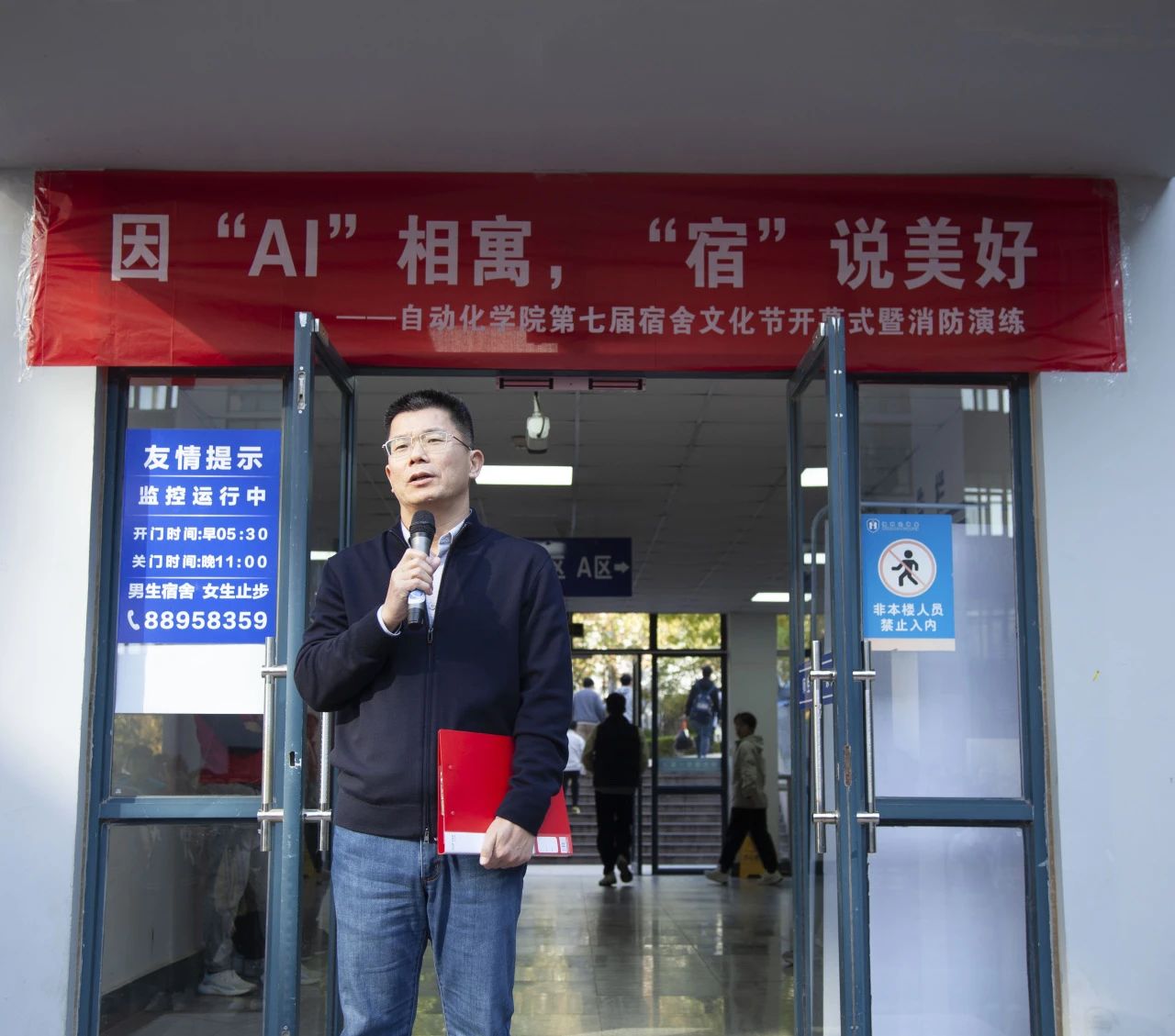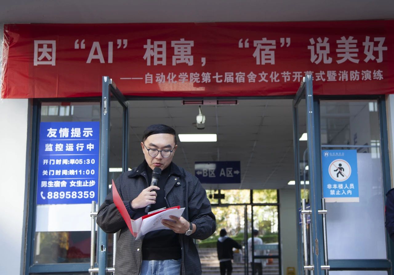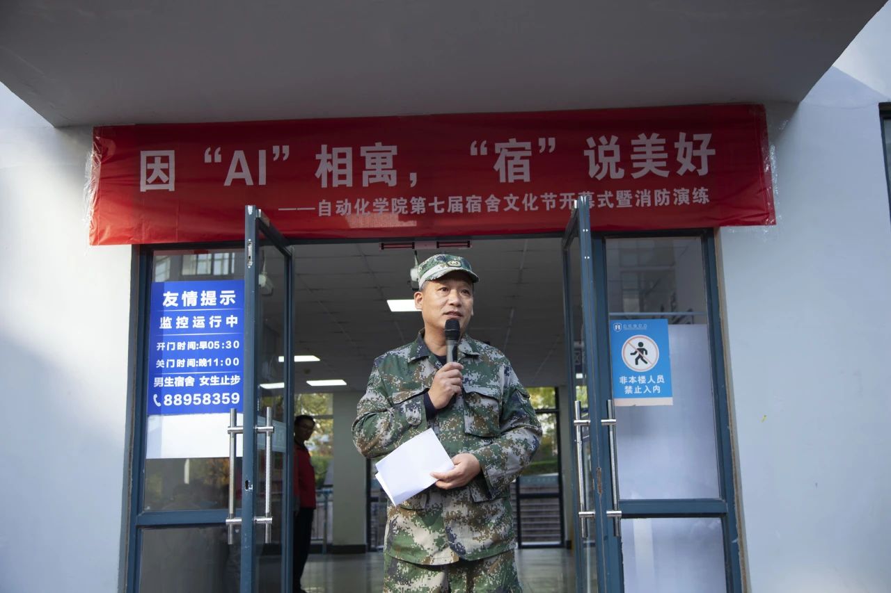 为保障学院学生宿舍生活安全,丰富学生的宿舍文化,提高宿舍成员之间的团队合作意识和创新精神,营造“安全、卫生、和谐、文明”的宿舍文化氛围,10月29日下午,自动化与电子工程学院第七届“因‘AI’相‘寓’,‘宿’说美好”宿舍文化节暨秋季消防演练启动仪式在北七宿舍楼院内正式开幕。学院党委副书记兼副院长刘名森,安全管理处消防科科长赵淑东、老师余全波,北苑七号宿舍楼楼长郝水燕,学院辅导员刘志飞、丁雅琼、李卓林及23、24级全体学生参加此次活动。