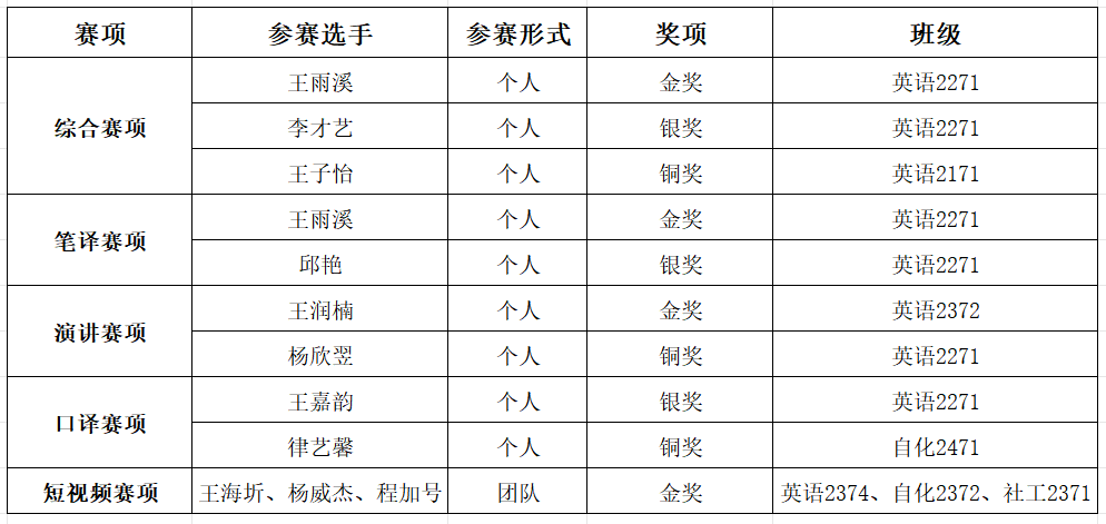 自三月份大赛启动以来,校区学团办、外语系积极筹备,通过组织英语口语大赛、写作大赛、阅读大赛、口译大赛、笔译大赛一系列赛事,选拔出优秀选手,组建备赛团队,对参赛选手进行针对性指导并完成多次模拟演练,为学生取得优异成绩奠定了坚实基础。