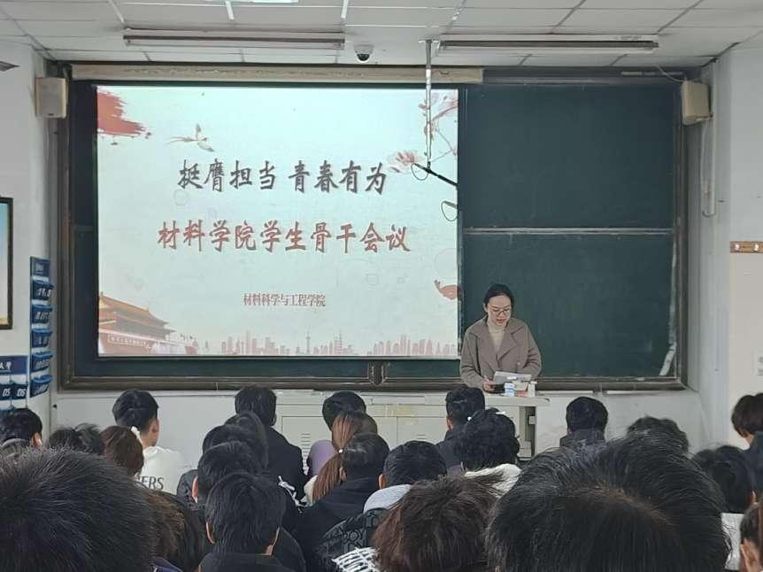 为提升学生干部工作能力、增强班委团队协作意识、明确班委职责分工,近日材料学院以“挺膺担当,青春有为“为主题开展了学生骨干会议。此次培训聚焦工作技能培训及经验传授交流,24级新生辅导员潘超超及各班新生学生骨干参会。
