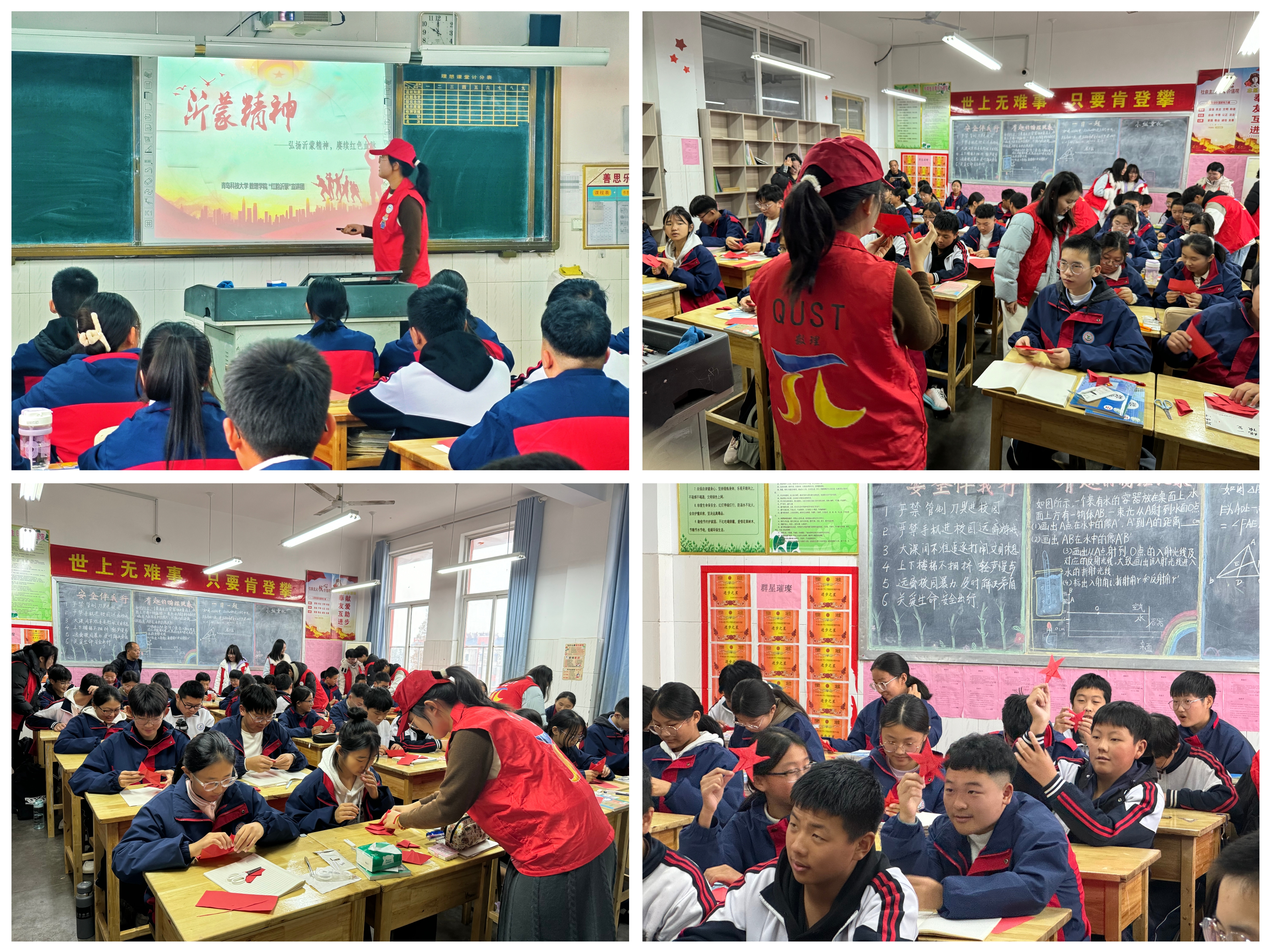 在阎庄街道初级中学的宣讲现场,宣讲人赵佳怡紧扣“弘扬沂蒙精神,赓续红色血脉”的主题,深情讲述了沂蒙精神的深刻内涵,鼓励同学们成为红色基因的传承者和沂蒙精神的积极践行者。宣讲过程中,宣讲团成员带领同学们动手折叠立体五角星,并在五角星上写下自己对未来的美好憧憬,使同学们在动手实践中深刻体会到传统技艺与红色文化的交融之美。