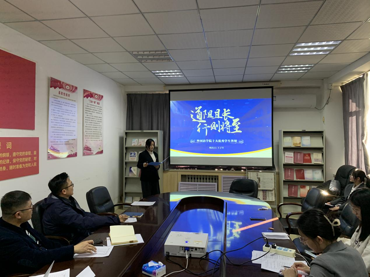 为充分发挥优秀学生的示范引领作用,建设优良院风、学风,营造良好的育人环境和成才氛围,激发广大学生勤奋进取、砥砺前行的热情,11月26日下午,外国语学院组织开展外国语学院第一届“十大优秀学生”评审会。