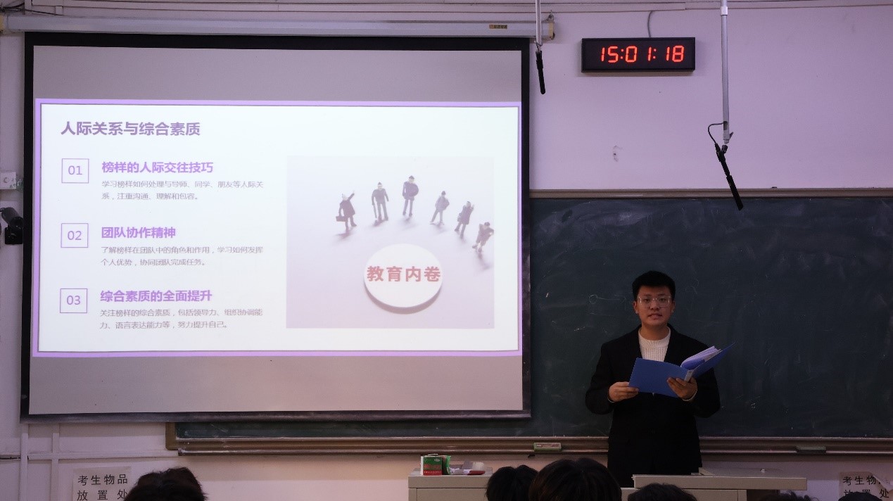 比赛过程中,每位参赛选手各显所能,全力以赴。选手们深入了解了“橡尚榜样”们的事迹,并结合各自班级做出了深度思考,将榜样力量以不同方式通过这场班会注入自己的班级中,以多种有趣且生动的形式开展主题班会。