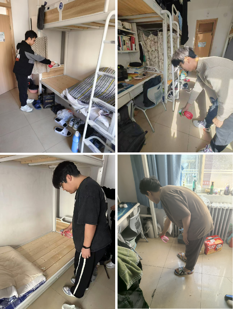 消杀过程中,各班级负责人秉持“全方位、全覆盖、无死角”的原则,对宿舍内的桌面、地面、床面及宿舍楼内走廊等区域进行全面消毒,严格按照相关规定的方法和操作喷洒消毒液,消杀结束后及时开窗通风换气,降低学生受病毒感染的风险。