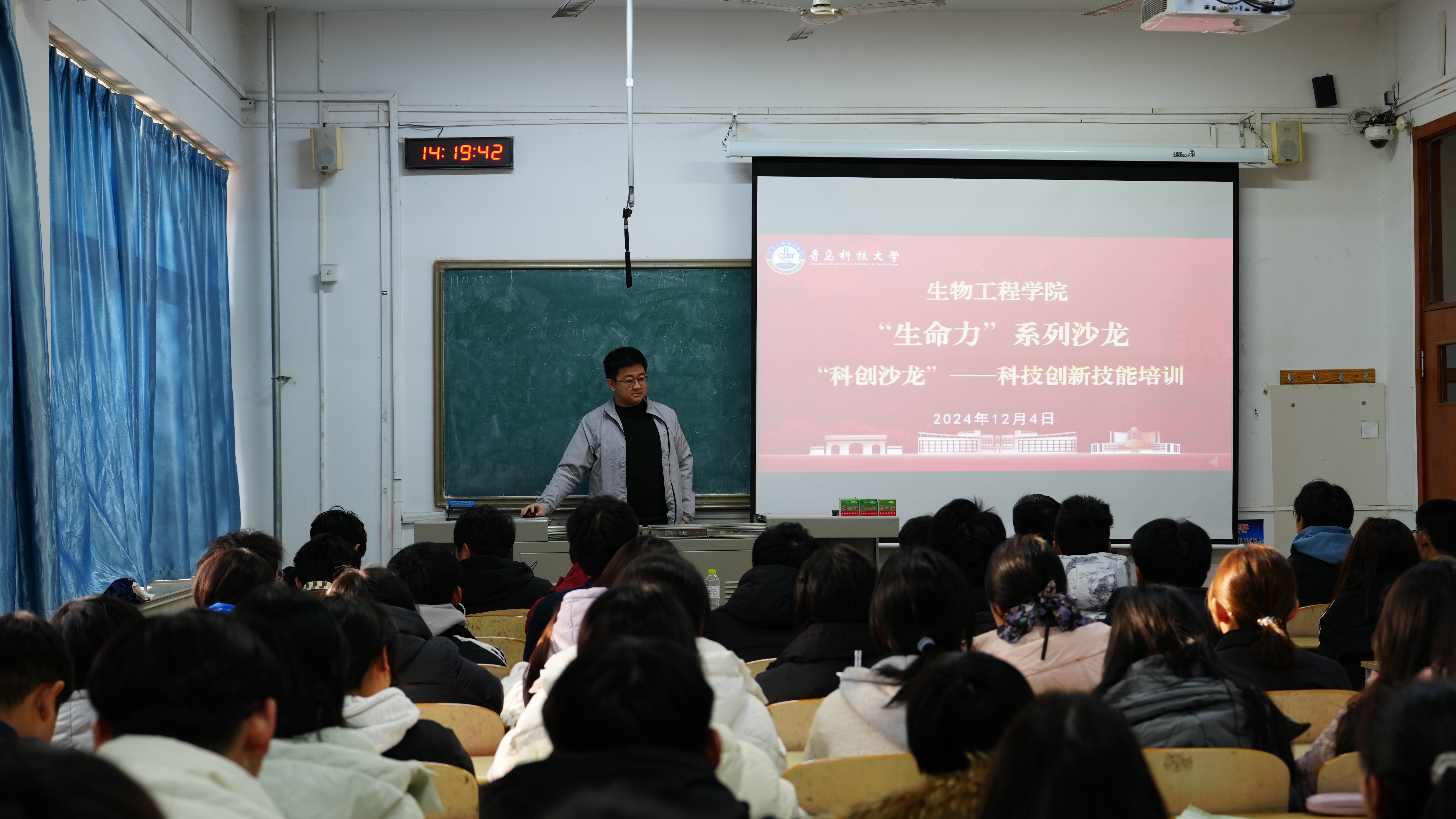为增强学院学生的创新能力和实践能力,加强学院学风建设,营造良好的科技创新氛围,12月4日,生物工程学院于四方校区二教107举办“生命力”系列沙龙(第六期):“科创沙龙”之科技创新技能培训会,天游ty8检测中心团委挑战杯办公室杨奉儒老师、化工学院“挑战杯”国赛金奖项目负责人葛瀚文、机电学院国赛银奖项目负责人任文硕担任本次培训会主讲嘉宾,活动由车玉章主持。