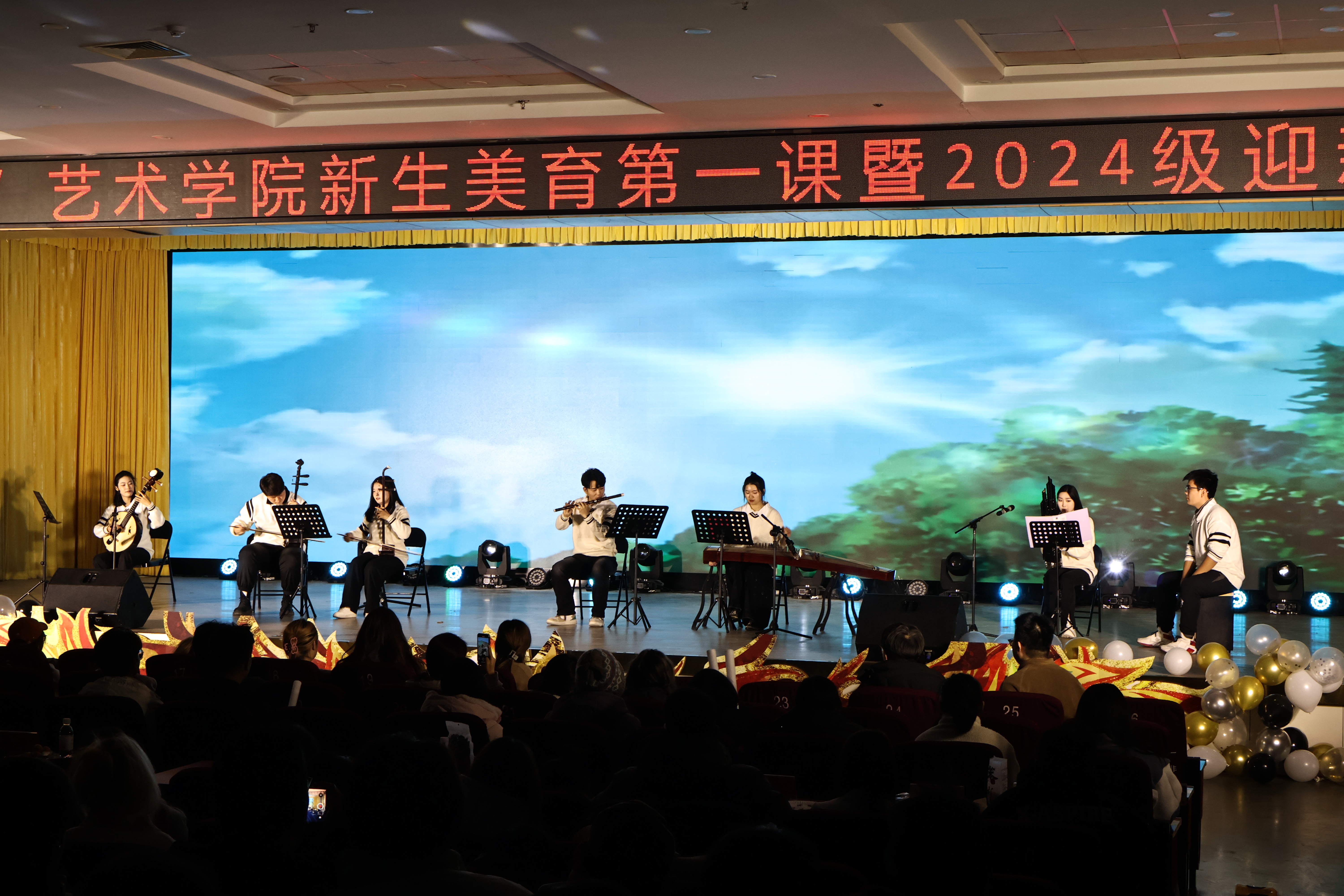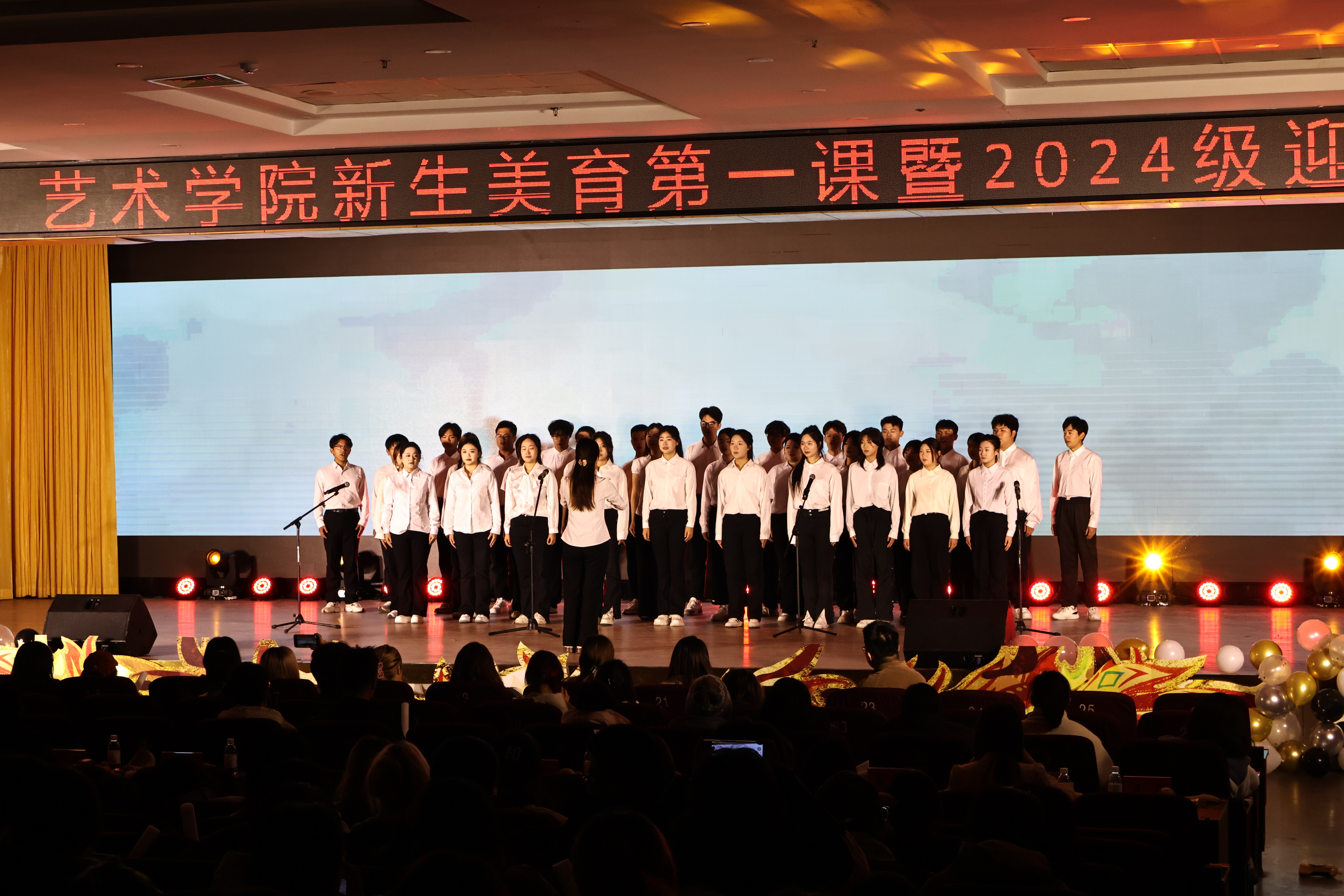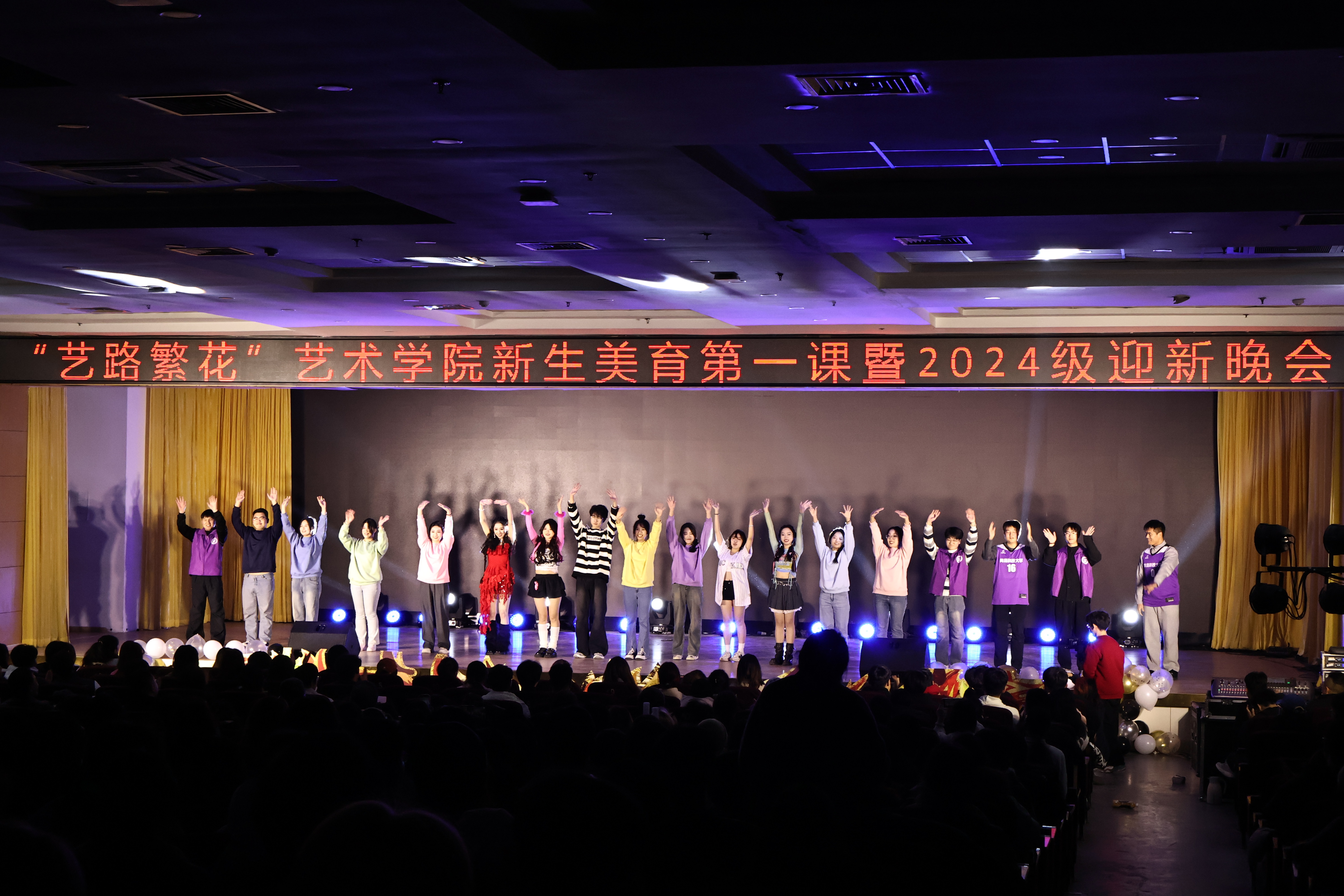 冬夜流光,星华璀璨,金蛇起舞迎新旦,12月10日晚,“艺路繁花”艺术学院新生美育第一课暨2024年迎新晚会在崂山校区第二报告厅隆重举行。学生处副处长尤亭亭,校团委副书记李航,后勤处副处长周晓英,艺术学院党政领导和师生代表共计600余人欢聚一堂,共度美好时光。