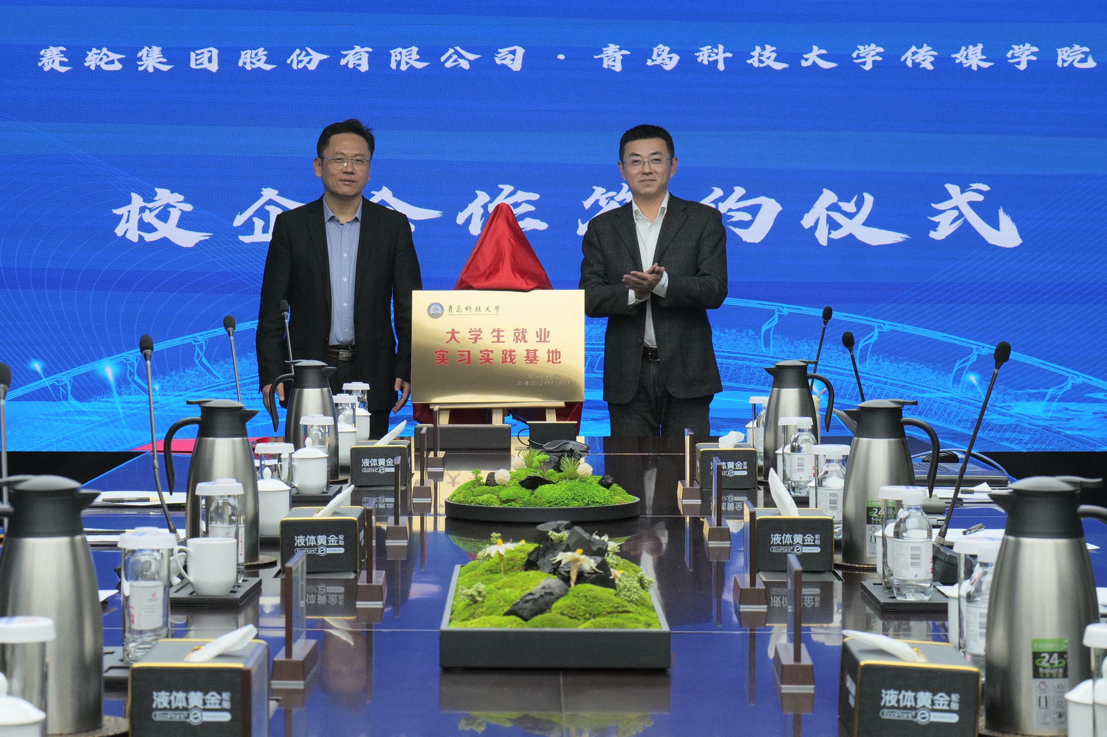 仪式上,张洪坤介绍了学校、学院的基本情况,并对赛轮集团提供的实习就业机会表示感谢,希望能以共建基地为契机,开展广泛深入合作,通过与赛轮集团建立合作,共建高水平实习基地,实现校企共赢。淳于贤鹏介绍了公司发展现状、培养模式及专业实习平台,他强调,赛轮集团自成立以来就高度重视与高校合作,期待传媒学院为赛轮集团输送更多传媒专业人才。