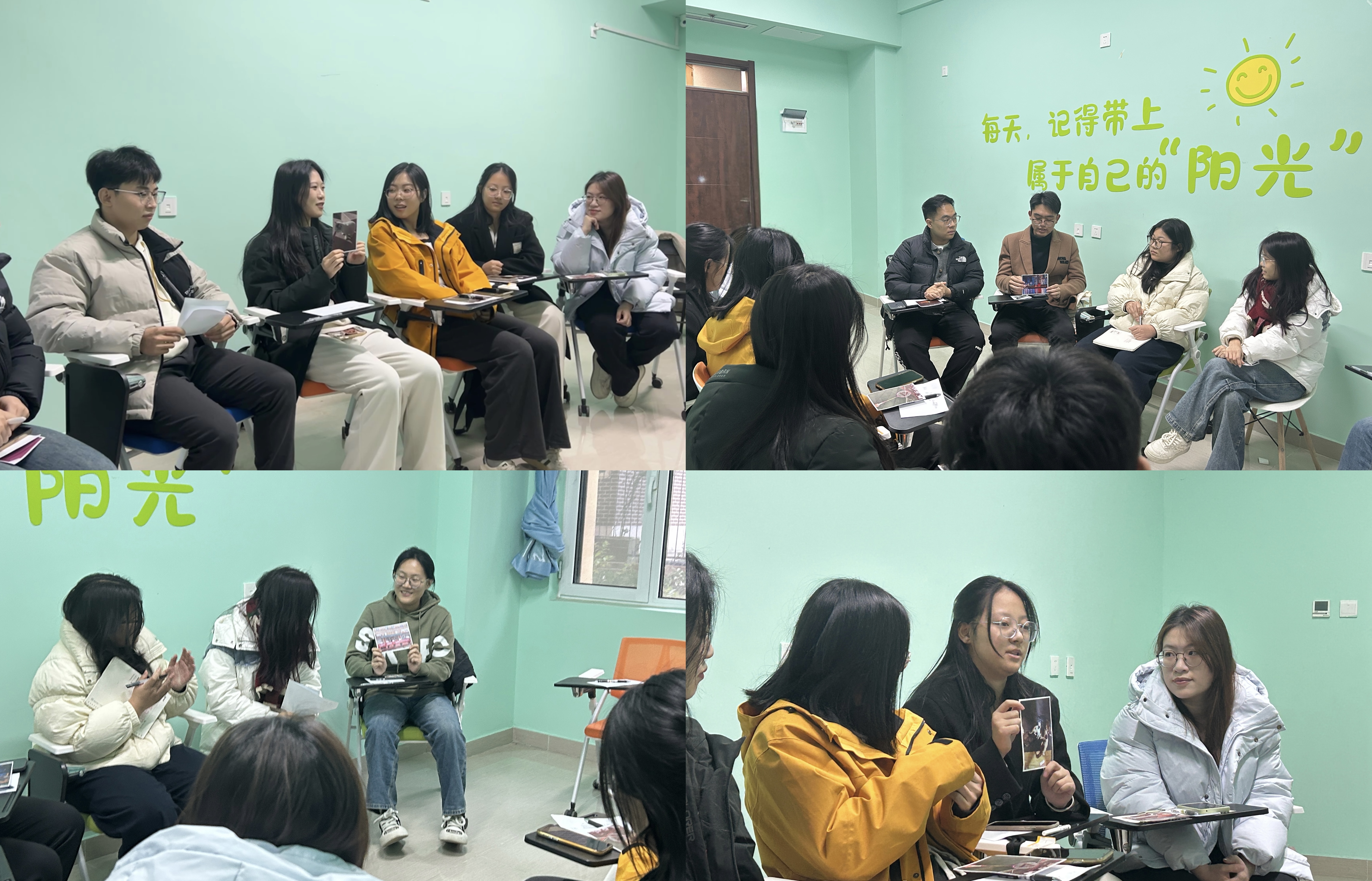 活动伊始的“真真假假的我”环节中,同学们认真思索后在 A4 纸上写下三个形容自己的关键词,通过展示和自我介绍,让大家猜测错误的关键词。大家仔细聆听、提问、讨论、分析,现场气氛热烈,欢声笑语不断,有效地拉近了同学们之间的距离。