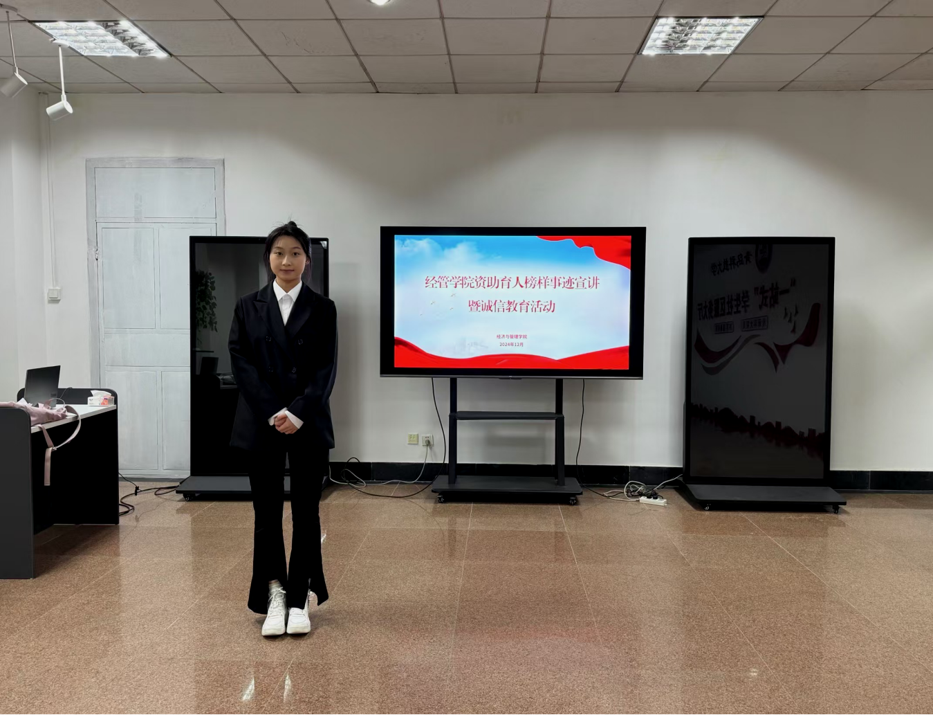为进一步推进学院资助育人工作,加强对学生的励志感恩教育,引导受助学生奋发自强、立志成才、感恩奉献,树立青春典型,12月19日,经管学院开展资助育人榜样宣讲活动暨诚信教育活动,引领受助学生树立远大理想,做有骨气、有底气、有志气的新时代青年。