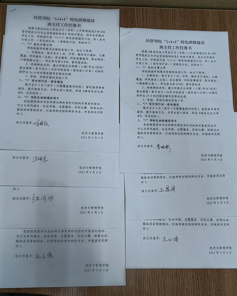 为全面落实立德树人根本任务,加强班级特色化建设,9月4日,经管学院在“一站式”学生社区召开“1+1+1”特色班级建设启动会暨2025级班主任签约仪式。学院党委副书记兼副院长牛宝卫主持会议,2025级新生辅导员、班主任参加会议,就新学期班级建设方向与班主任重点工作展开研讨交流,为2025级新生成长与学院学生工作谋篇布局。